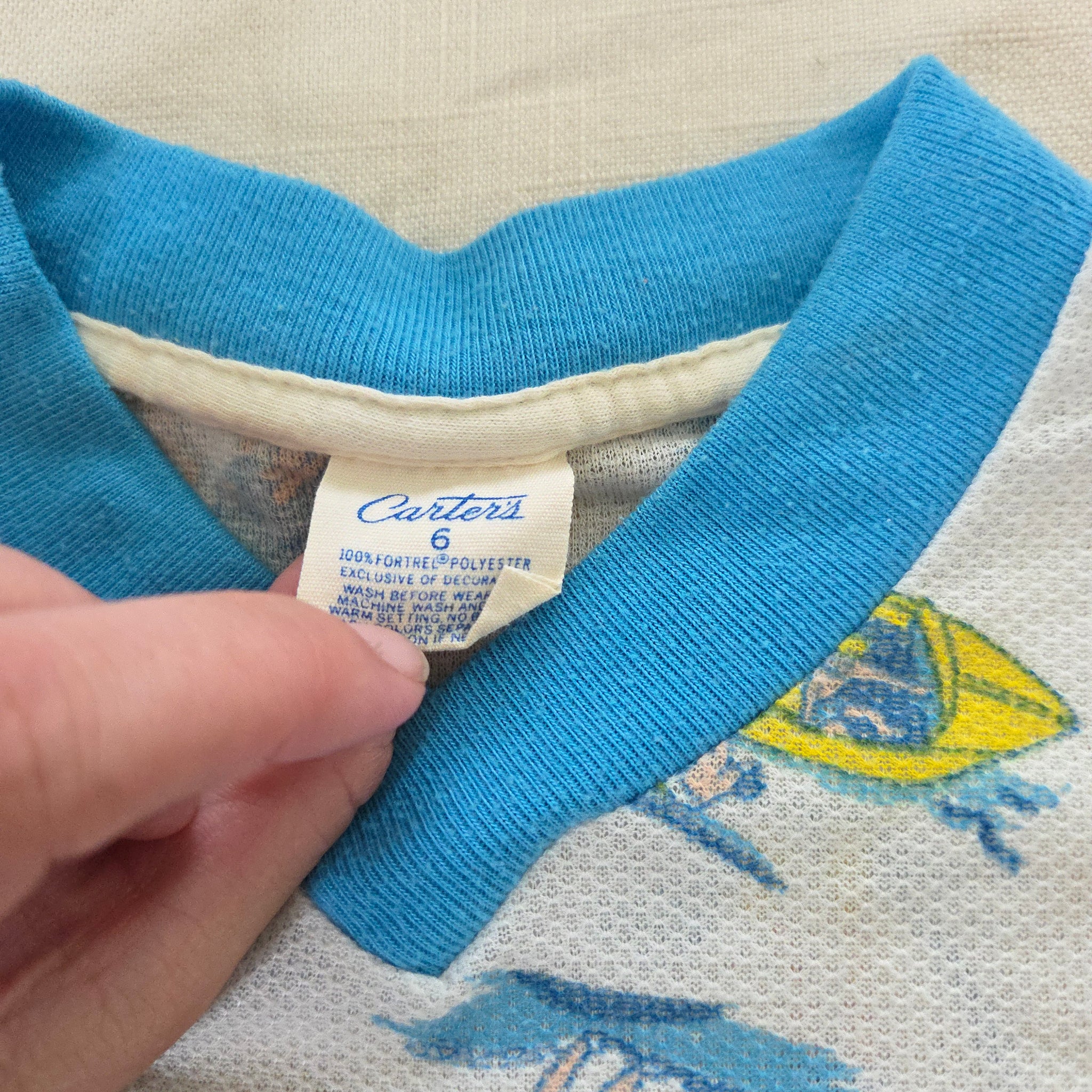 Vintage Carters 70s era surfer and boating pattern shirt and shorts pajamas set! Light spot shown. Please see all photos for condition and measurements