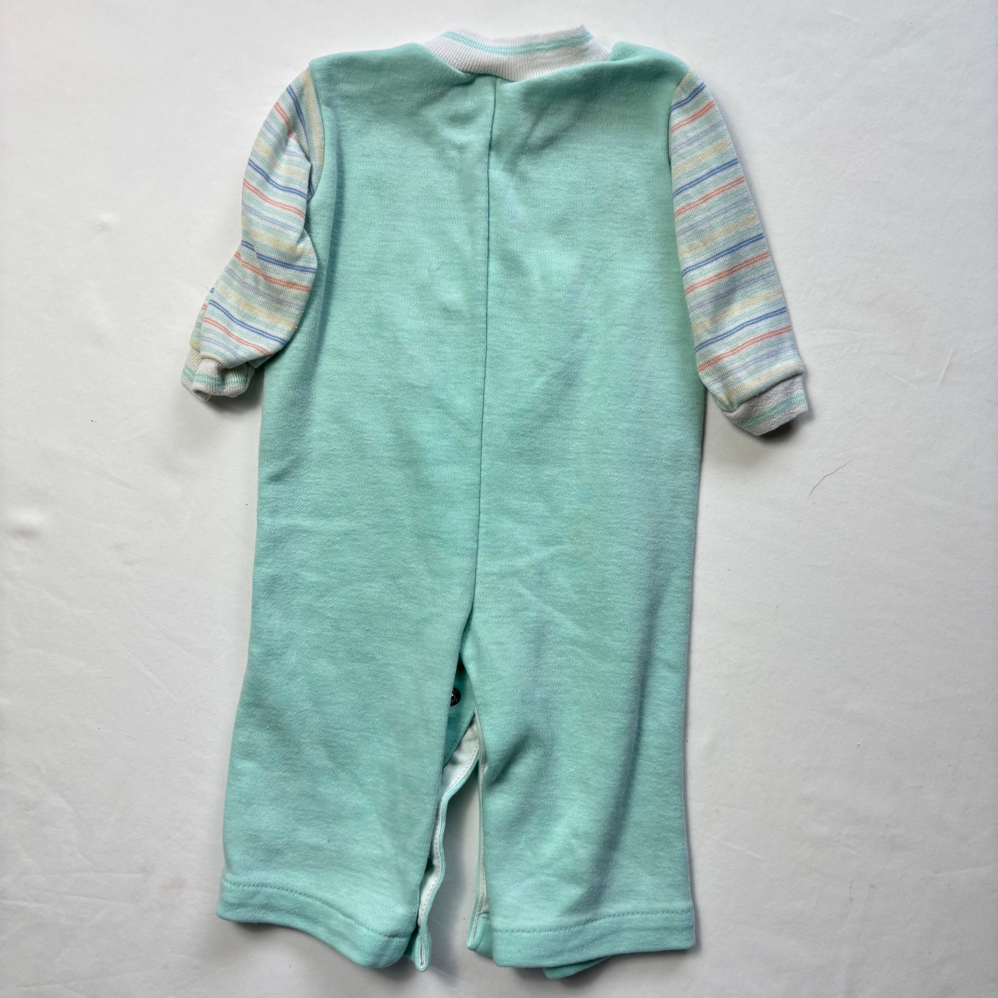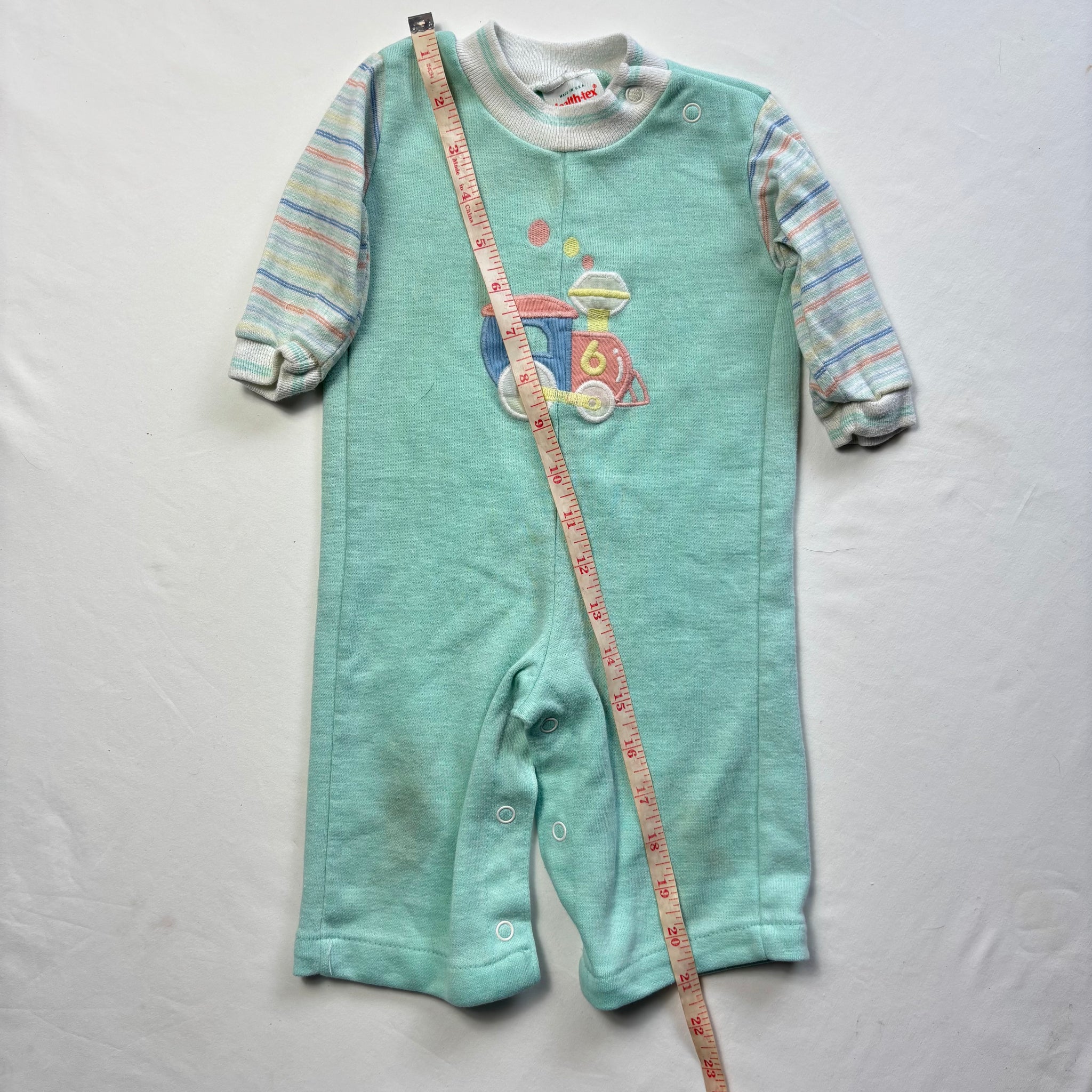 Vintage Healthtex mint and striped sleeve bodysuit with train applique on chest! Please see all photos for condition and measurements