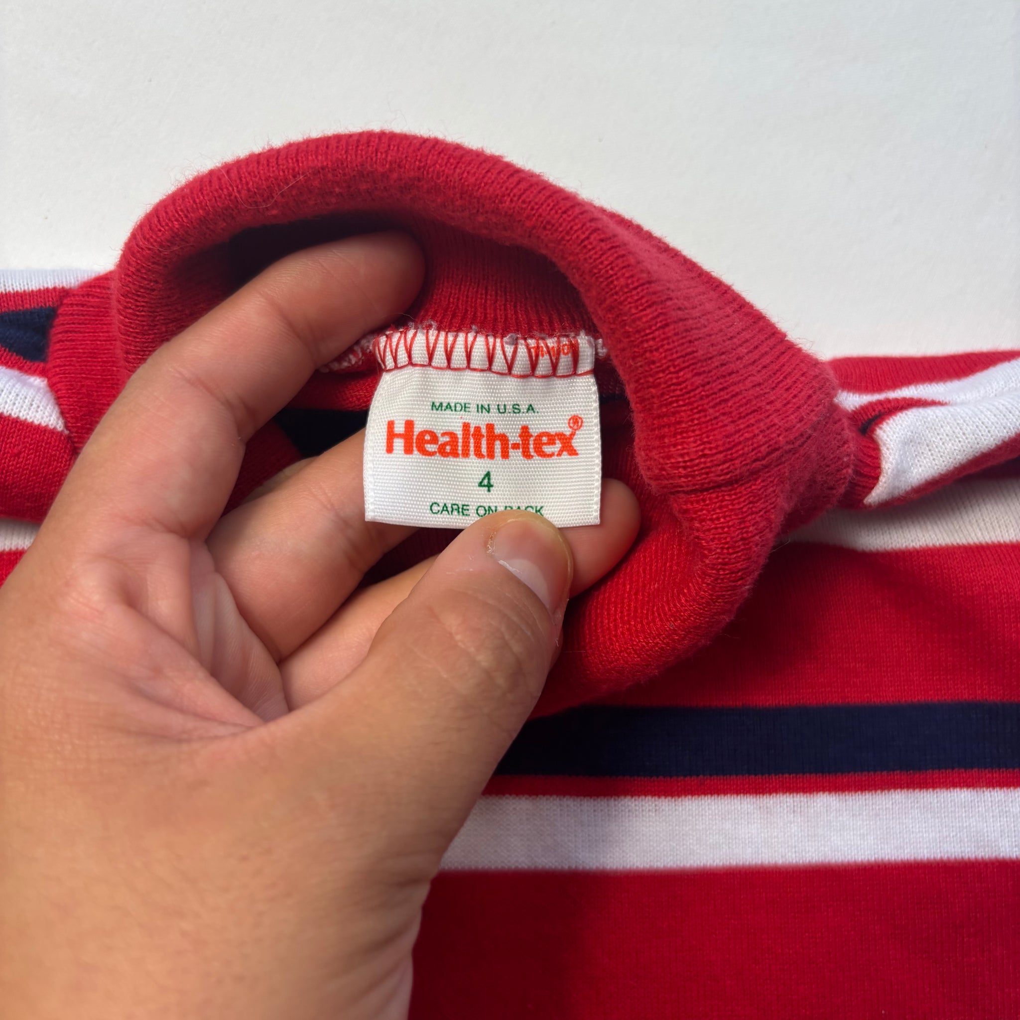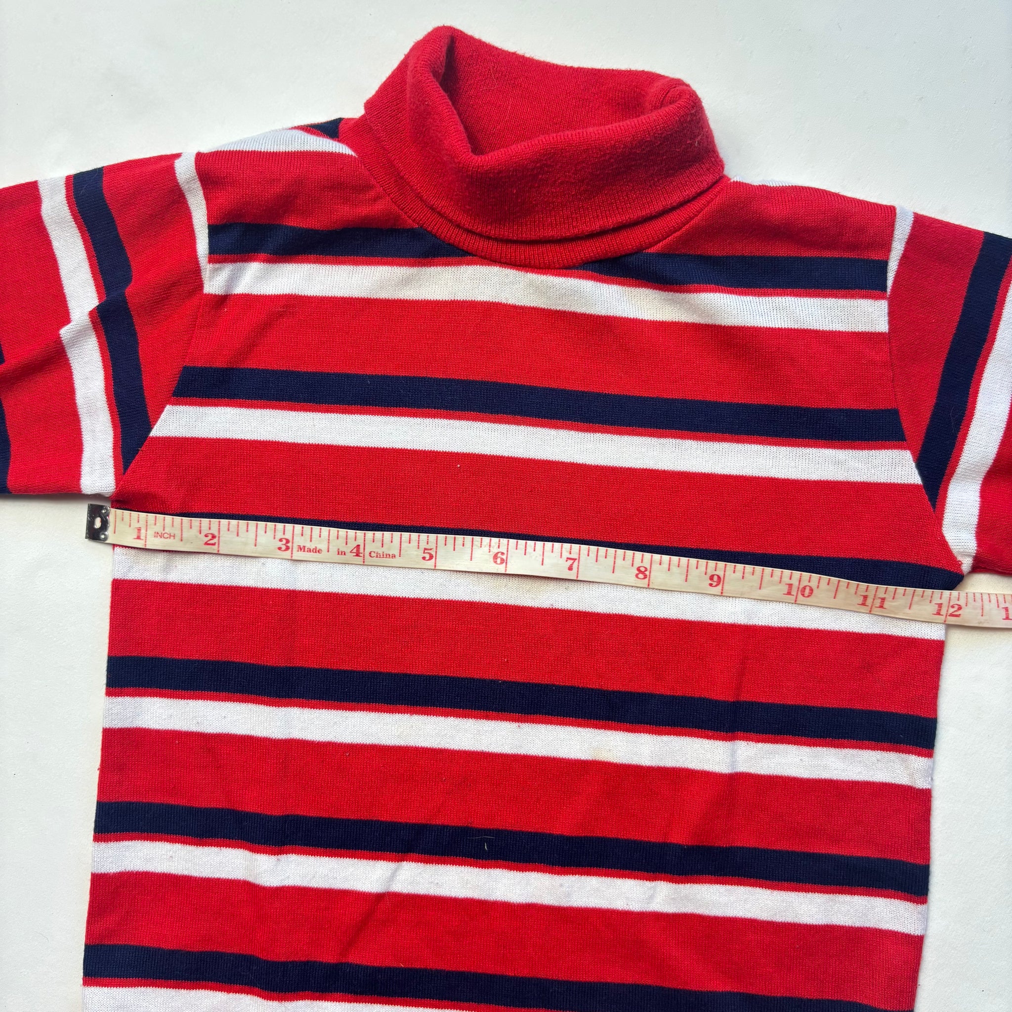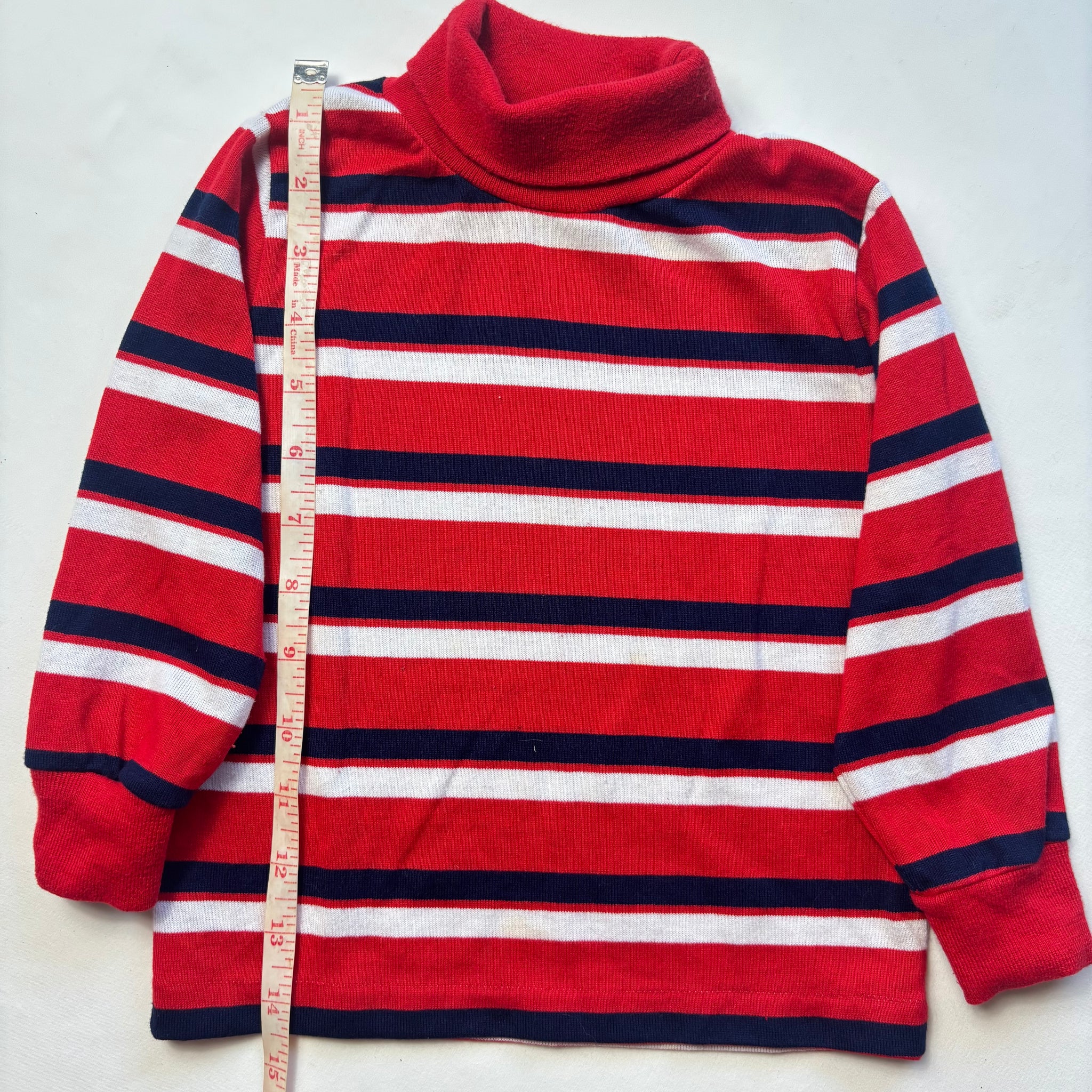 Vintage Healthtex brand red, navy blue, and white striped turtleneck long sleeve shirt! Please see all photos for condition and measurements