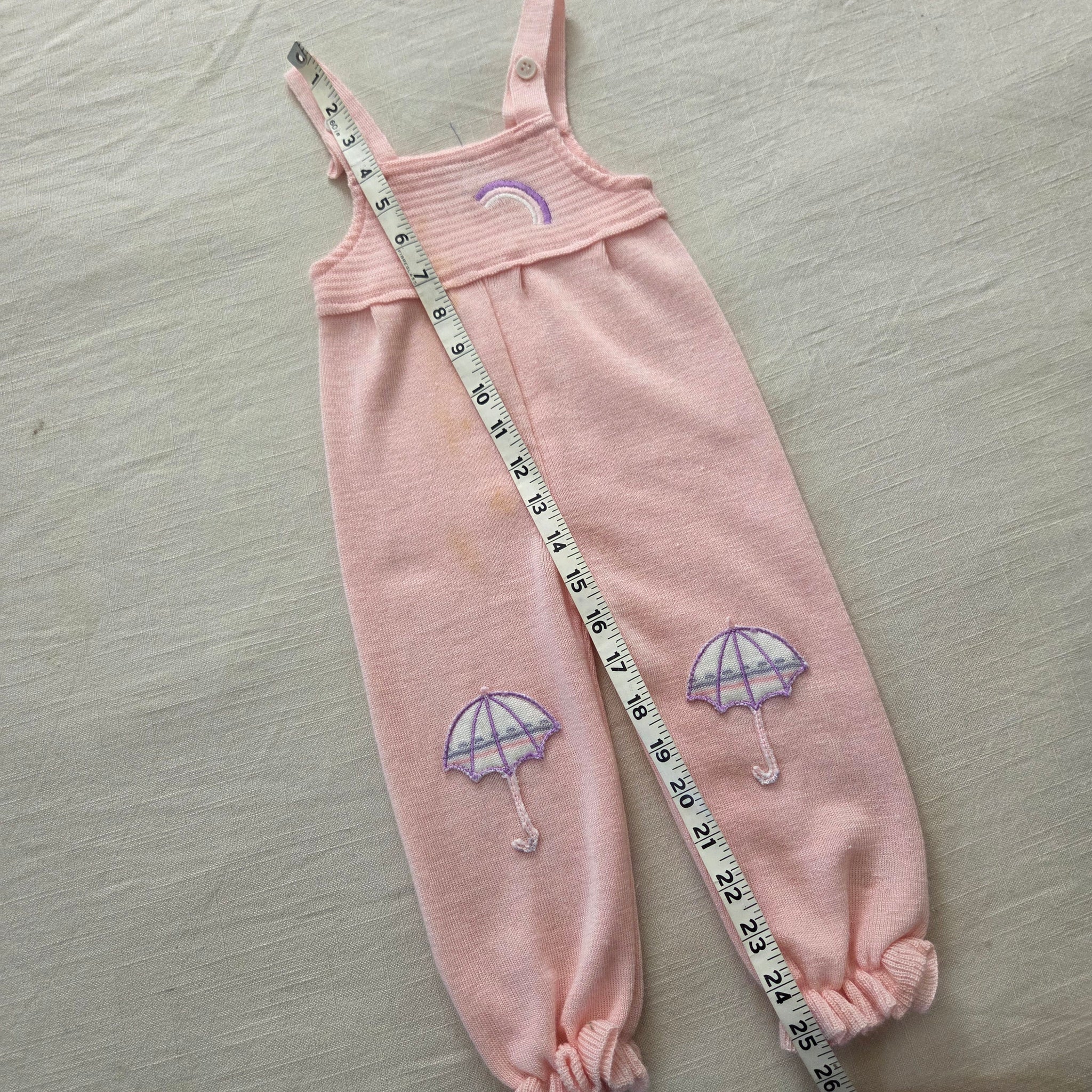 Vintage Umbrella Pink Knit Overalls 12-18 months