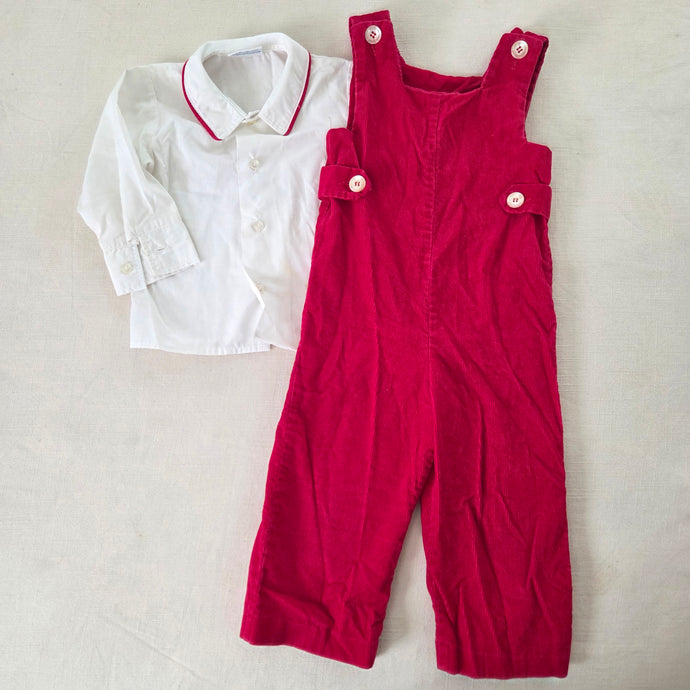 Vintage Red Corduroy Christmas Romper 18-24