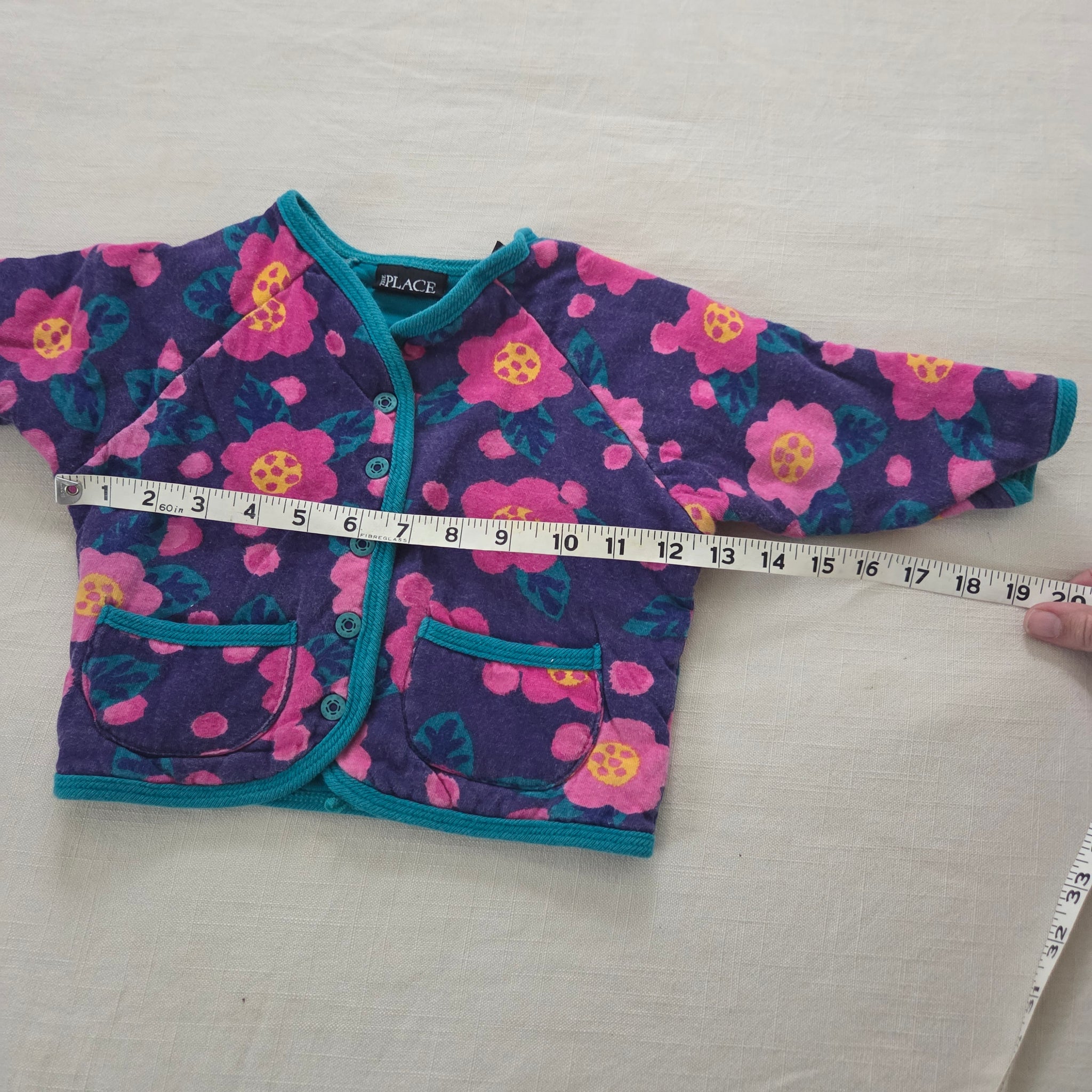 Vintage The Place purple and pink floral buttonup sweater with turquoise blue trim! Please see all photos for condition and measurements