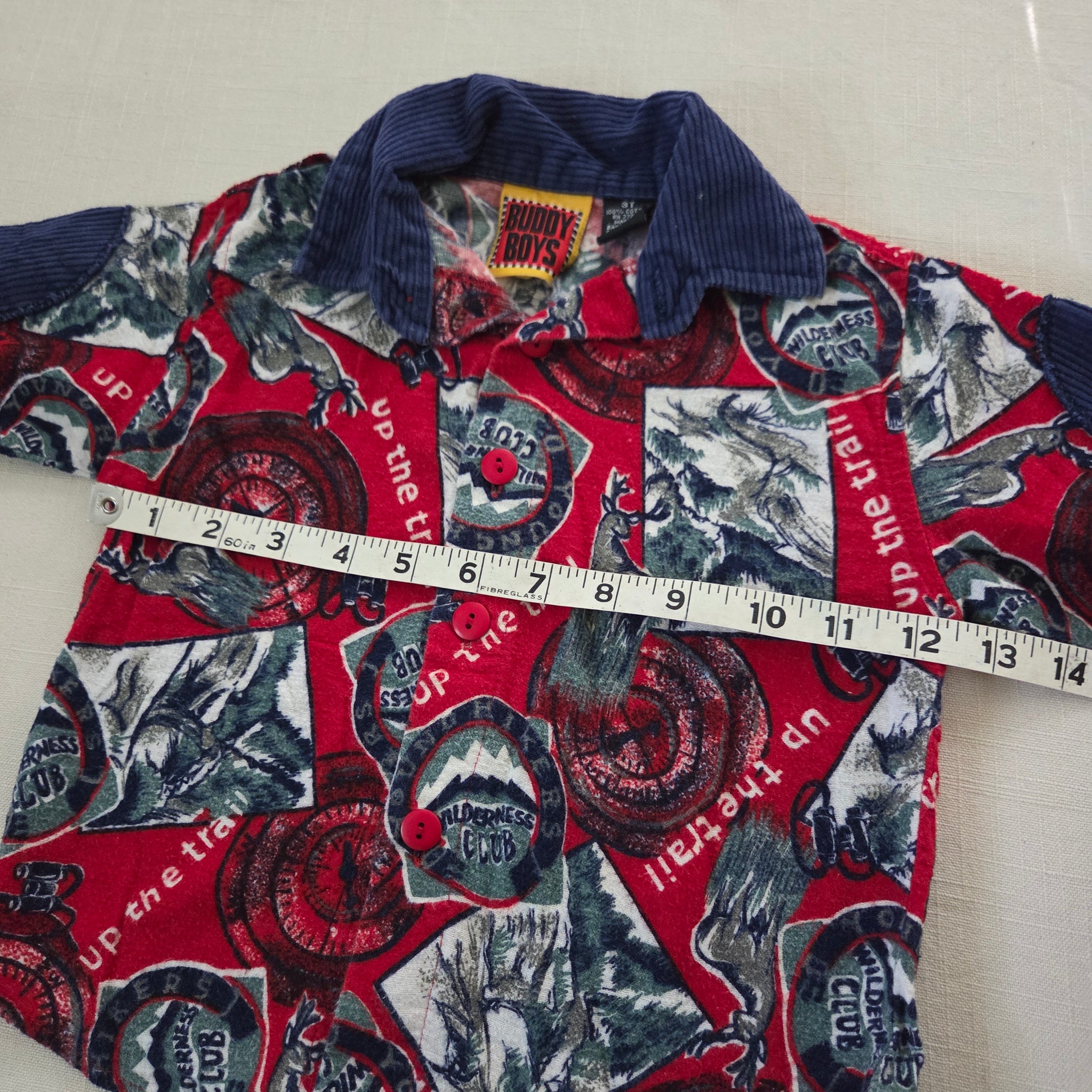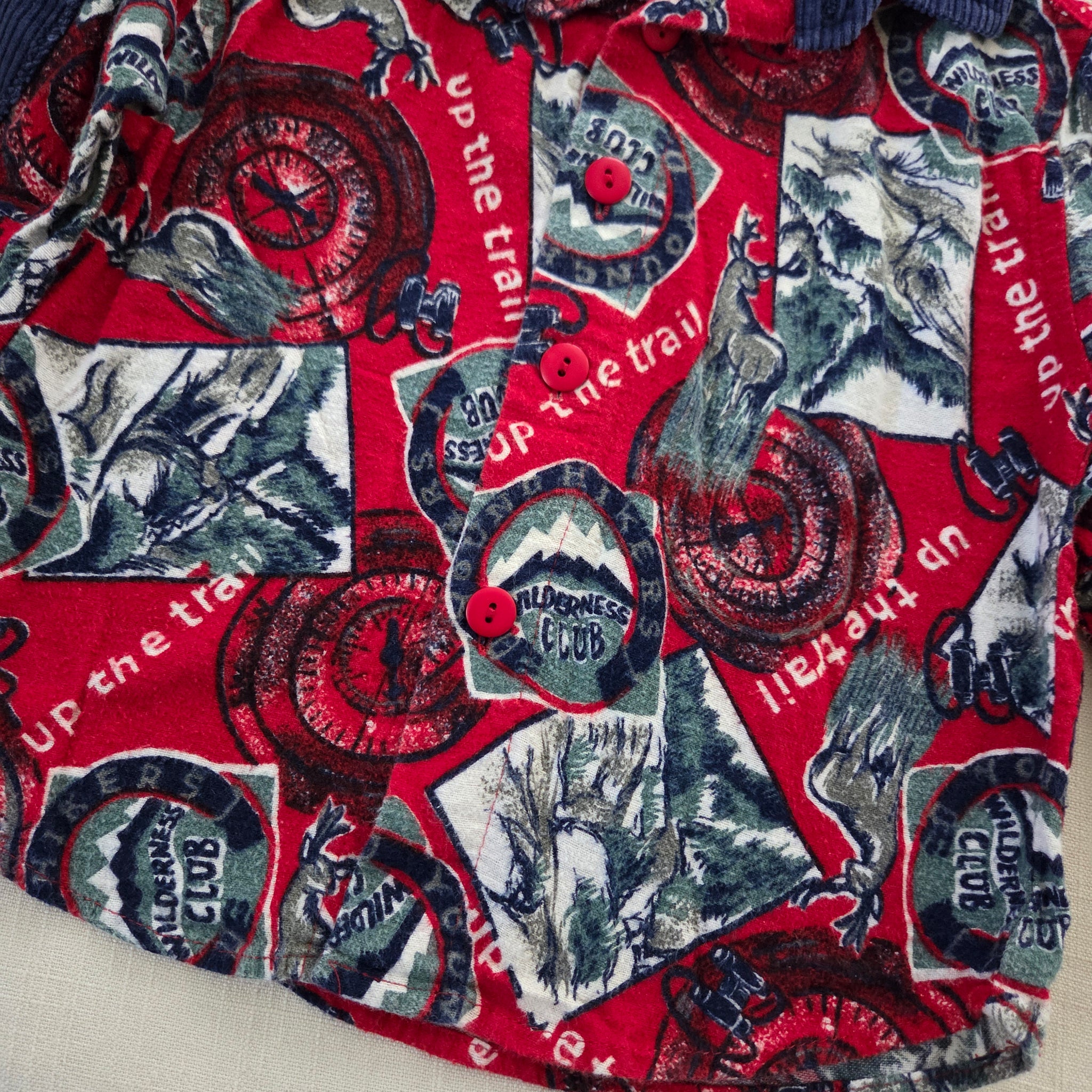 Vintage Buddy Boys brand red flannel "up the trail" hiking patch pattern buttondown long sleeve shirt! Please see all photos for condition and measurements
