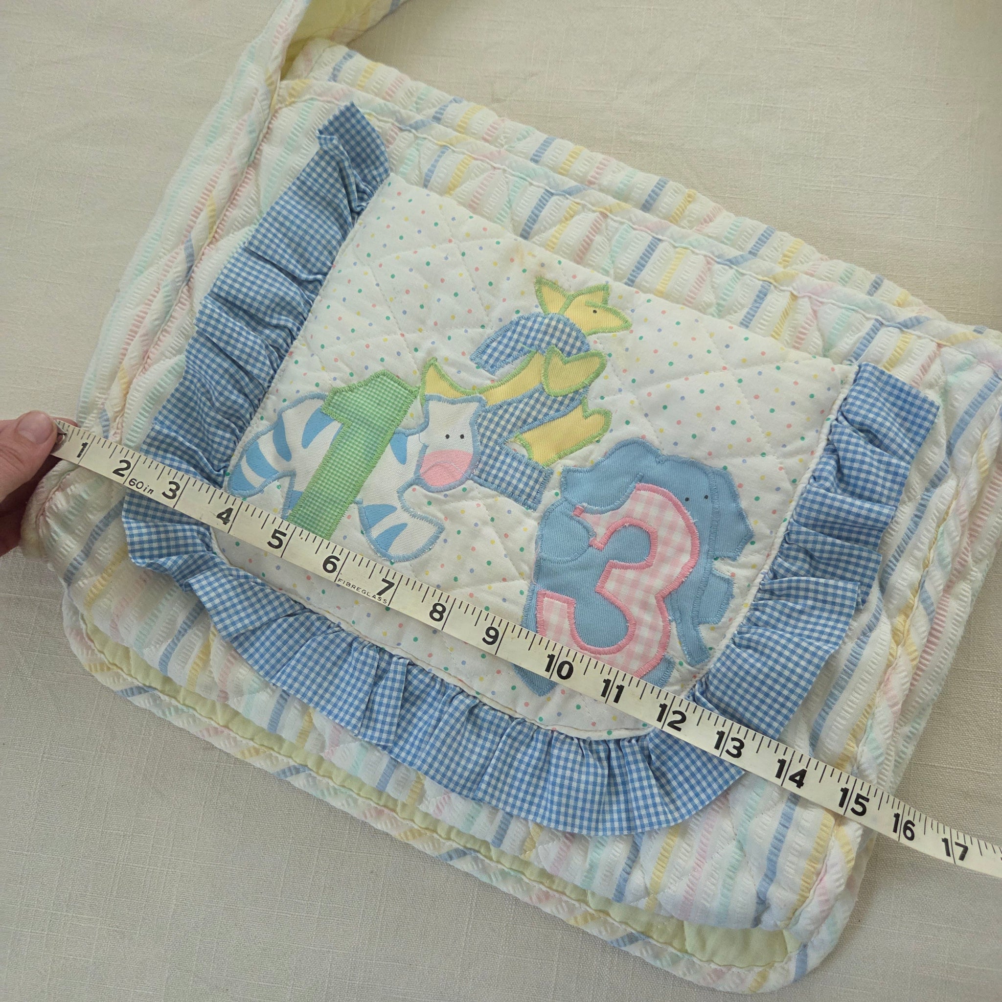 Vintage "123" quilted shoulder bag with little animals behind the numbers! Please see all photos for condition and measurements