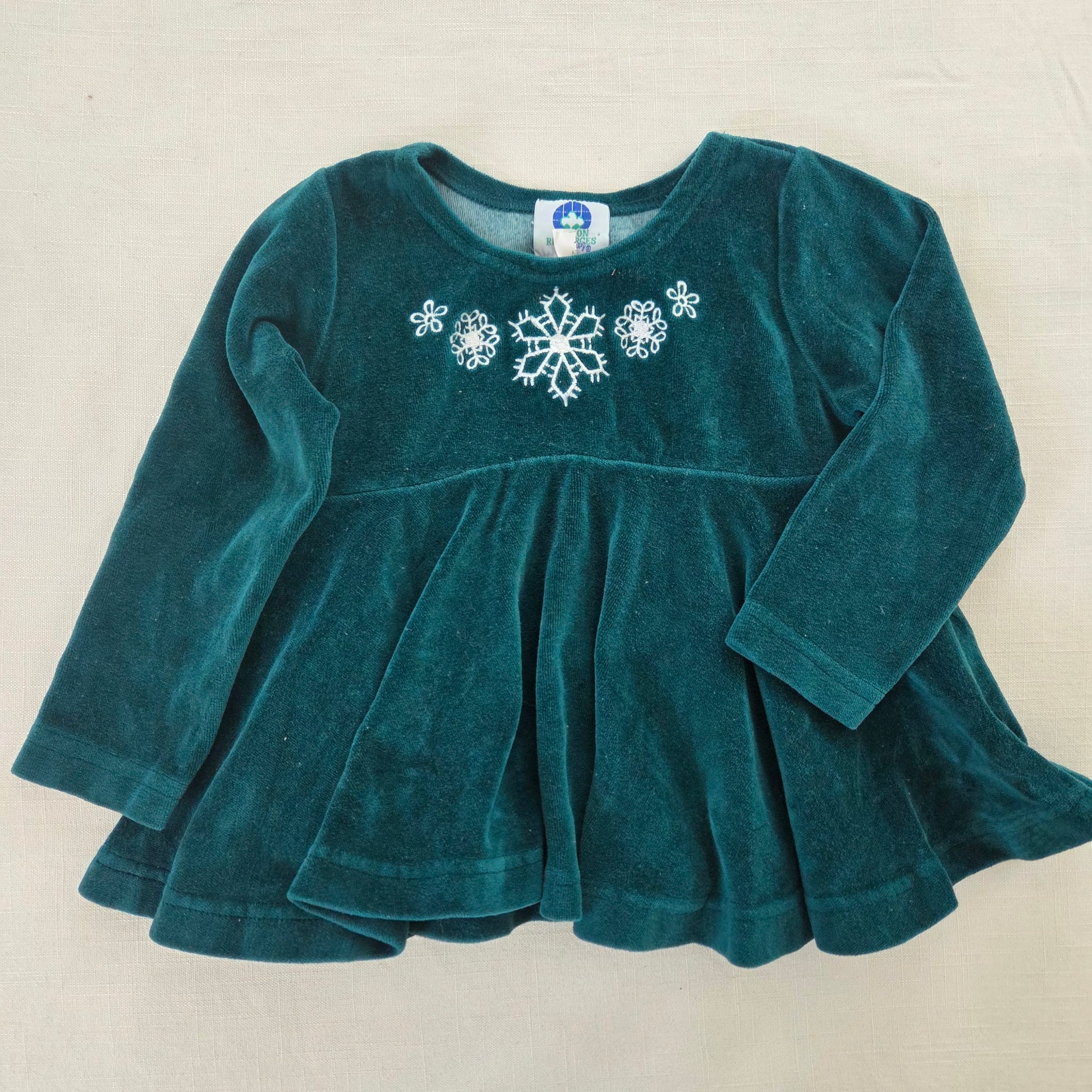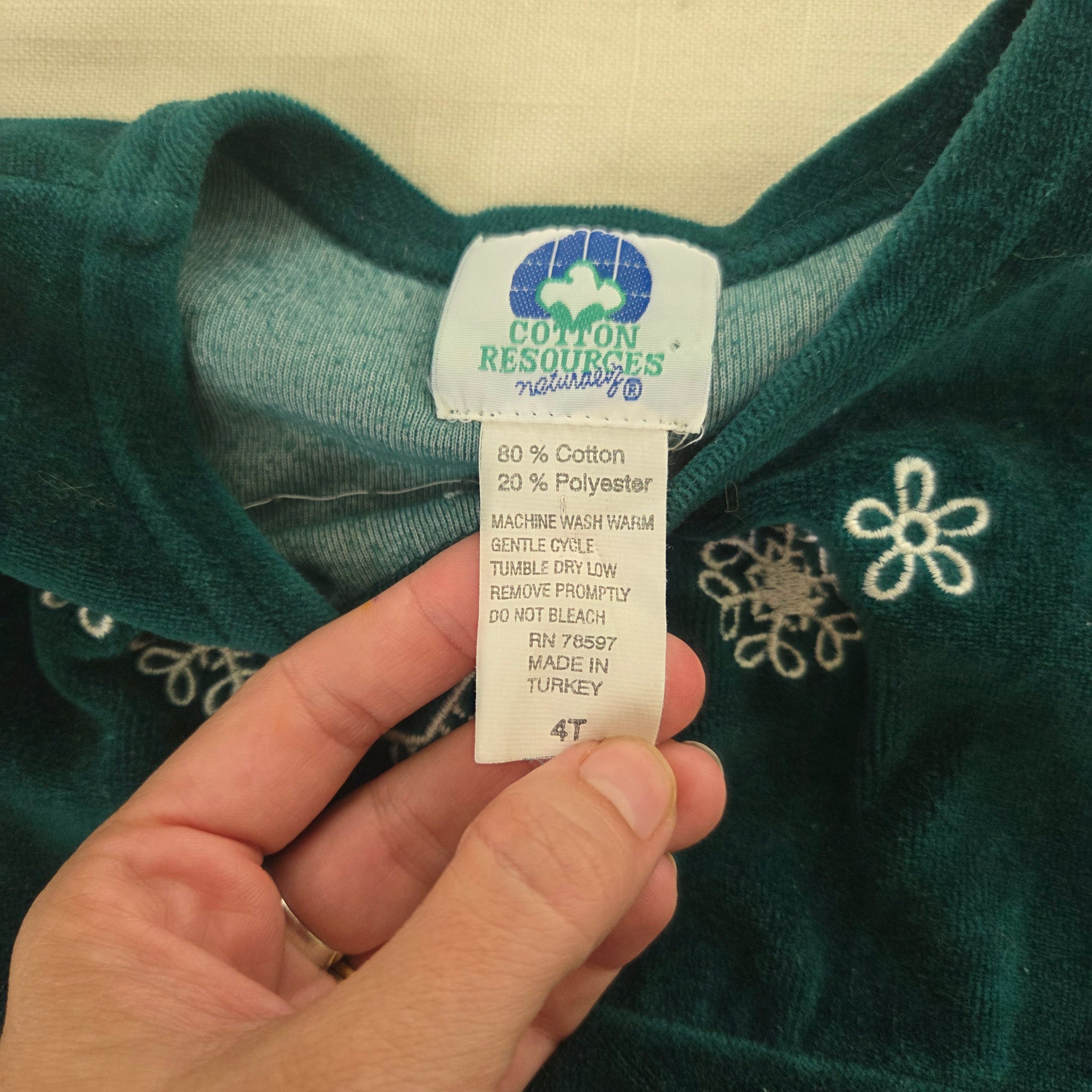 Vintage Cotton Resources brand dark green velvet long sleeve tunic with wintery flowers on chest! Please see all photos for condition and measurements