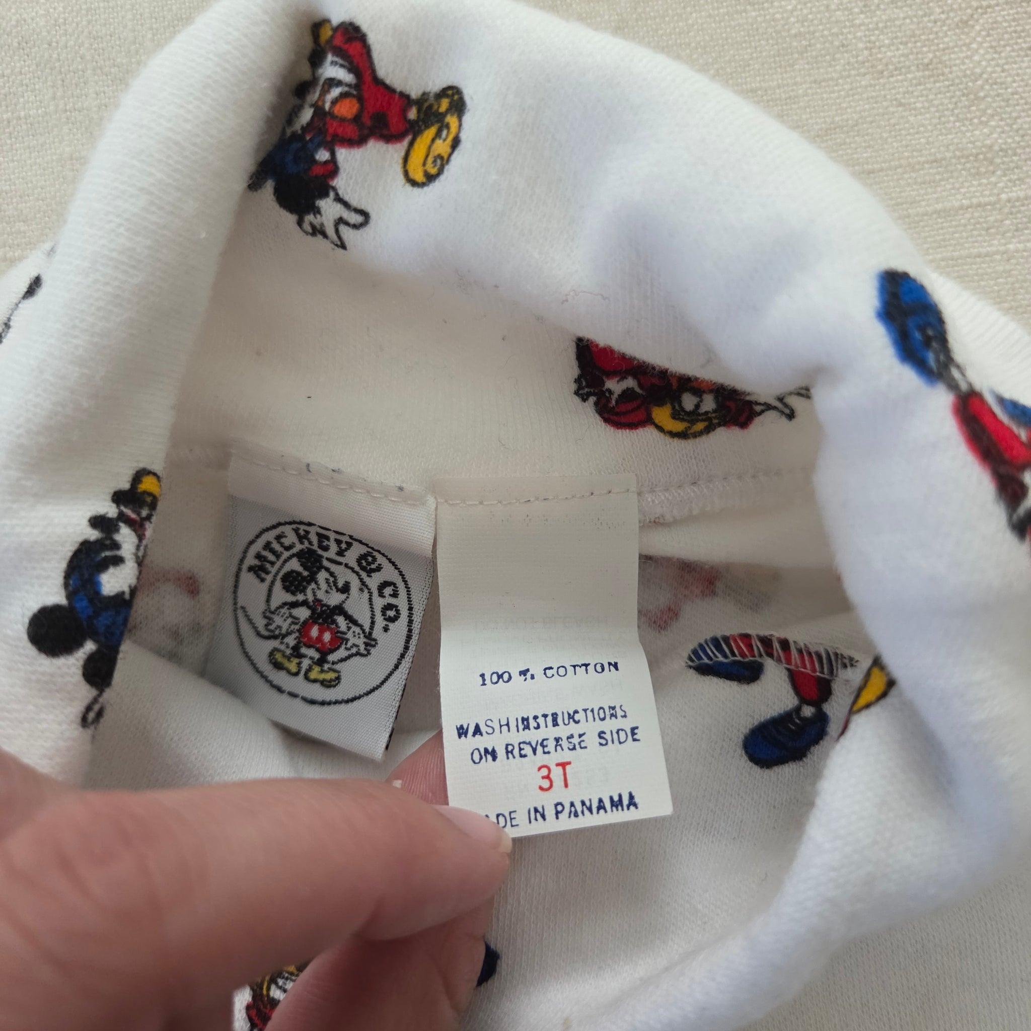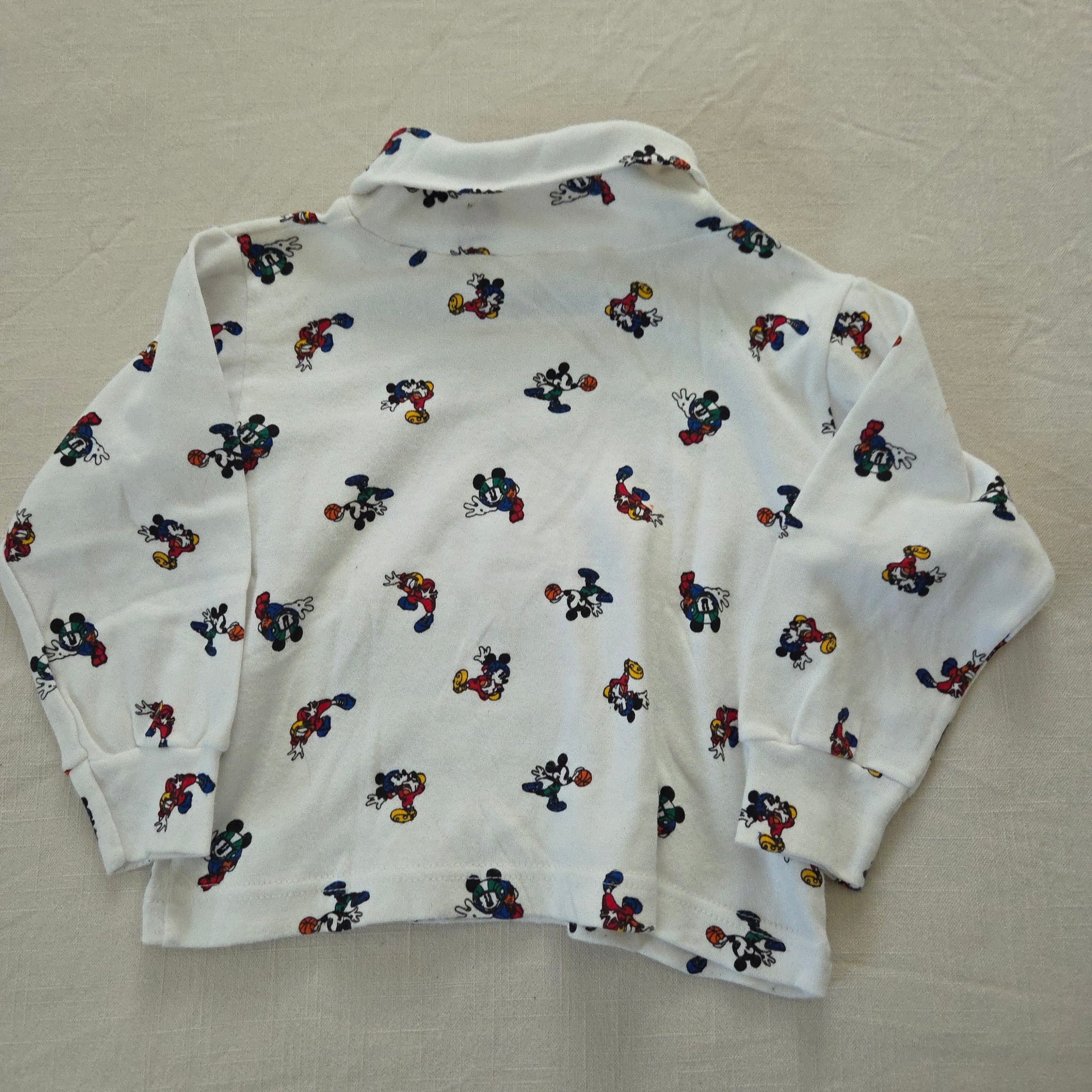 Vintage 90s Mickey & Co brand Mickey Mouse playing football and basketball pattern long sleeve turtleneck shirt! Please see all photos for condition and measurements