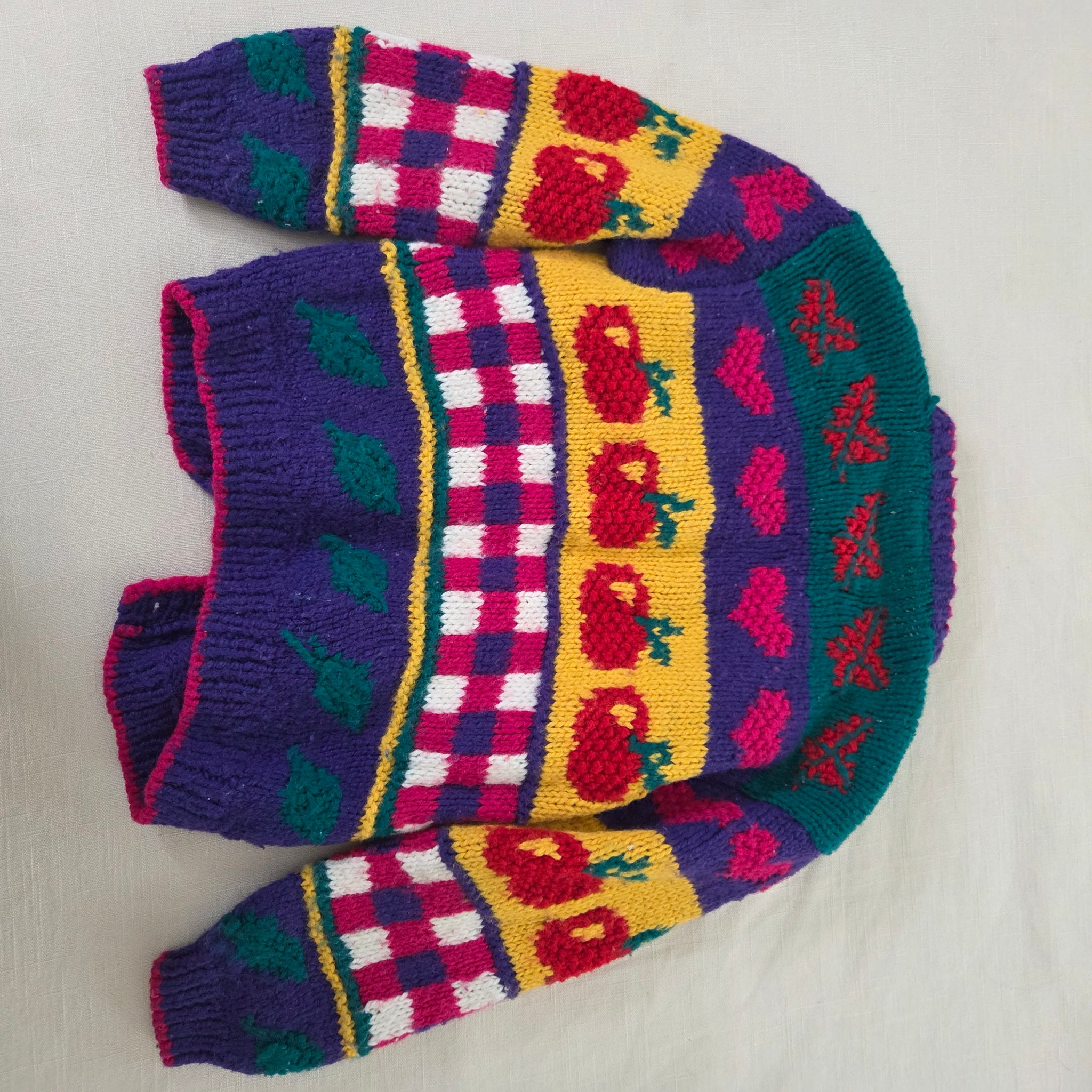 Vintage Fun Pattern Chunky Knit Cardigan kids 7/8