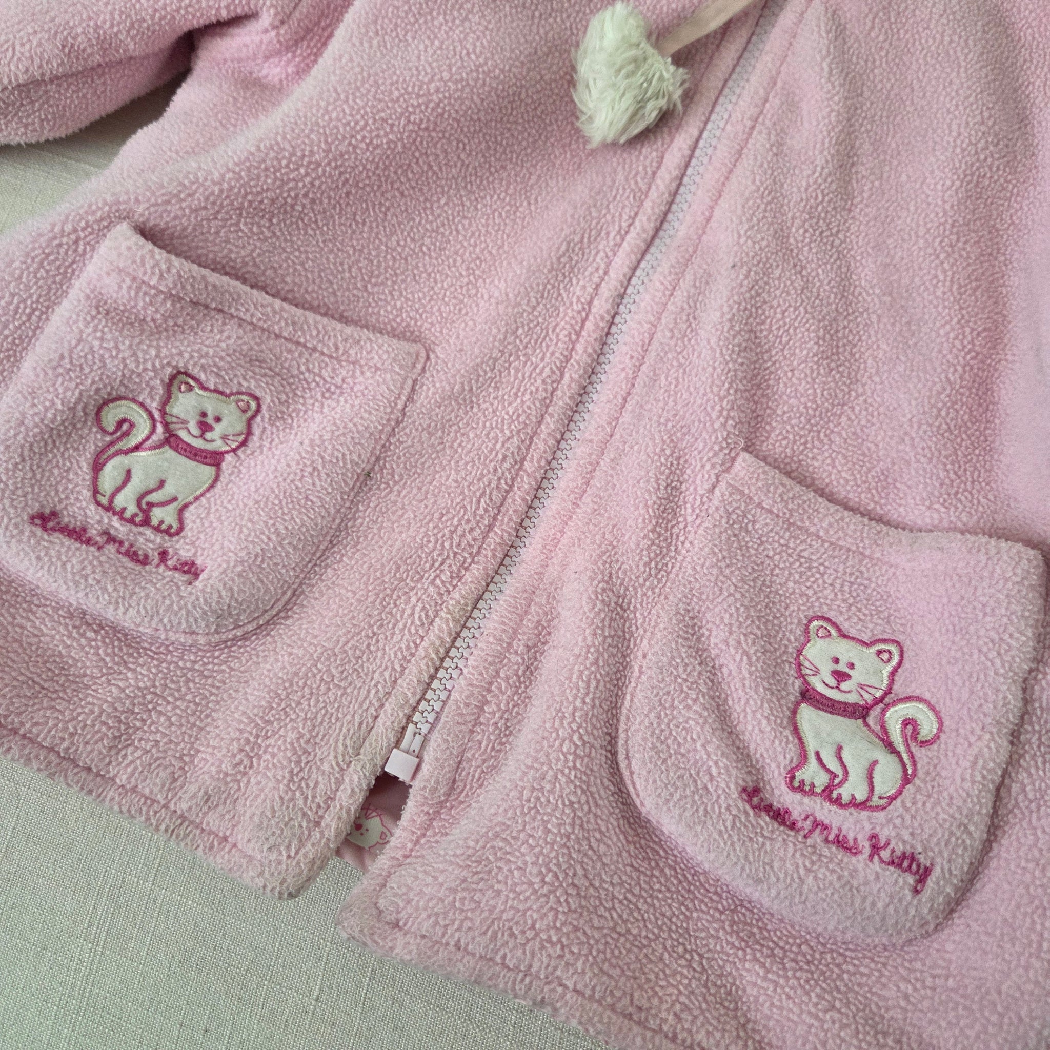 Vintage Just Friends reversible pink cats jacket! One side is solid pink fleece with kitties embroidered on pockets and other side is cats pattern all over! Note there is a yellow spot on top of hood, also small one on chest shown. Some wear to fur around wrists also. Please see all photos for condition and measurements