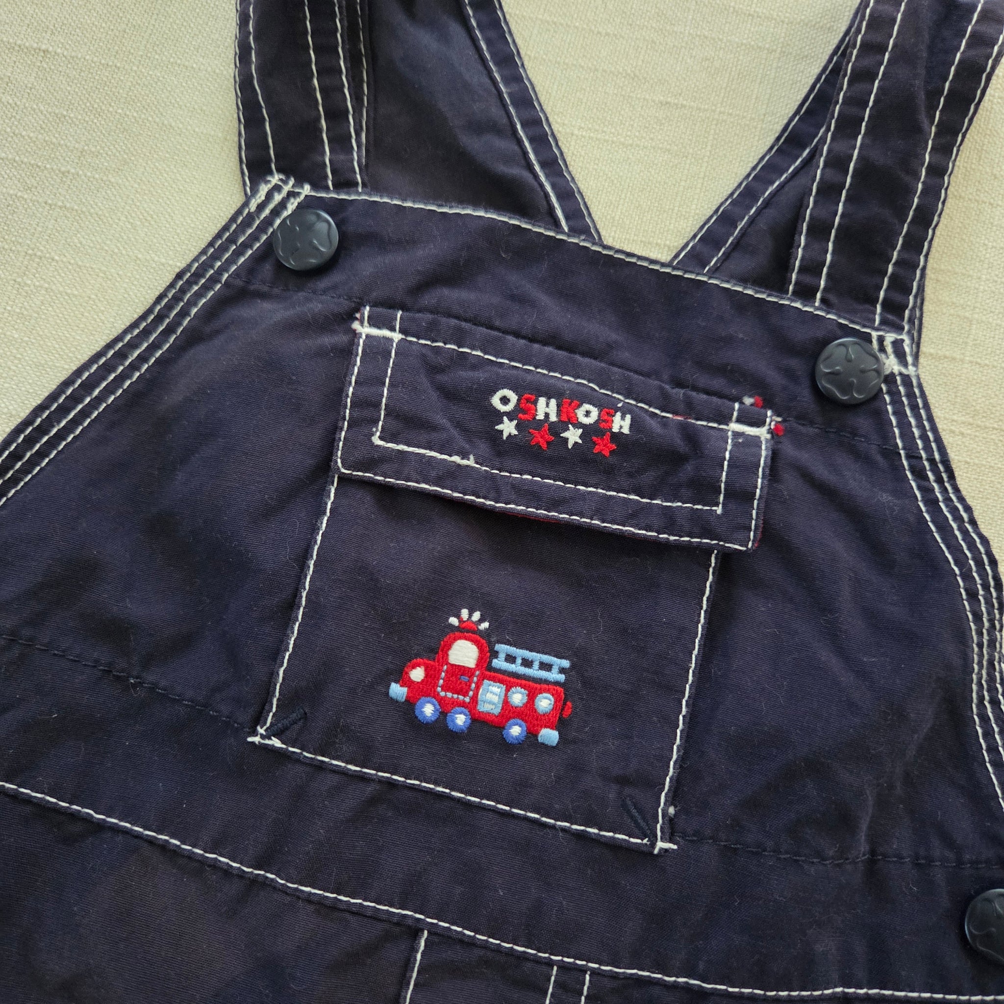 Vintage Oshkosh B'gosh Y2K navy cargo pocket shortalls with cute fire truck embroidery! Please see photos for condition and measurements