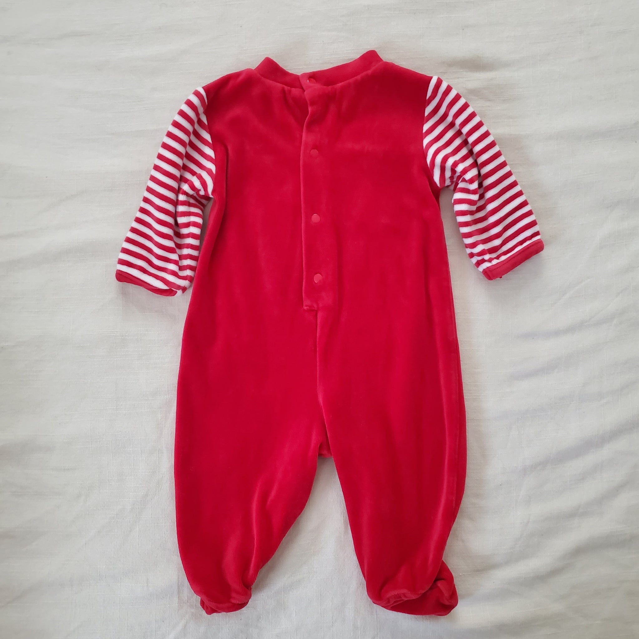 Vintage bright red first Christmas snowman soft velour footed romper! Please see all photos for condition and details