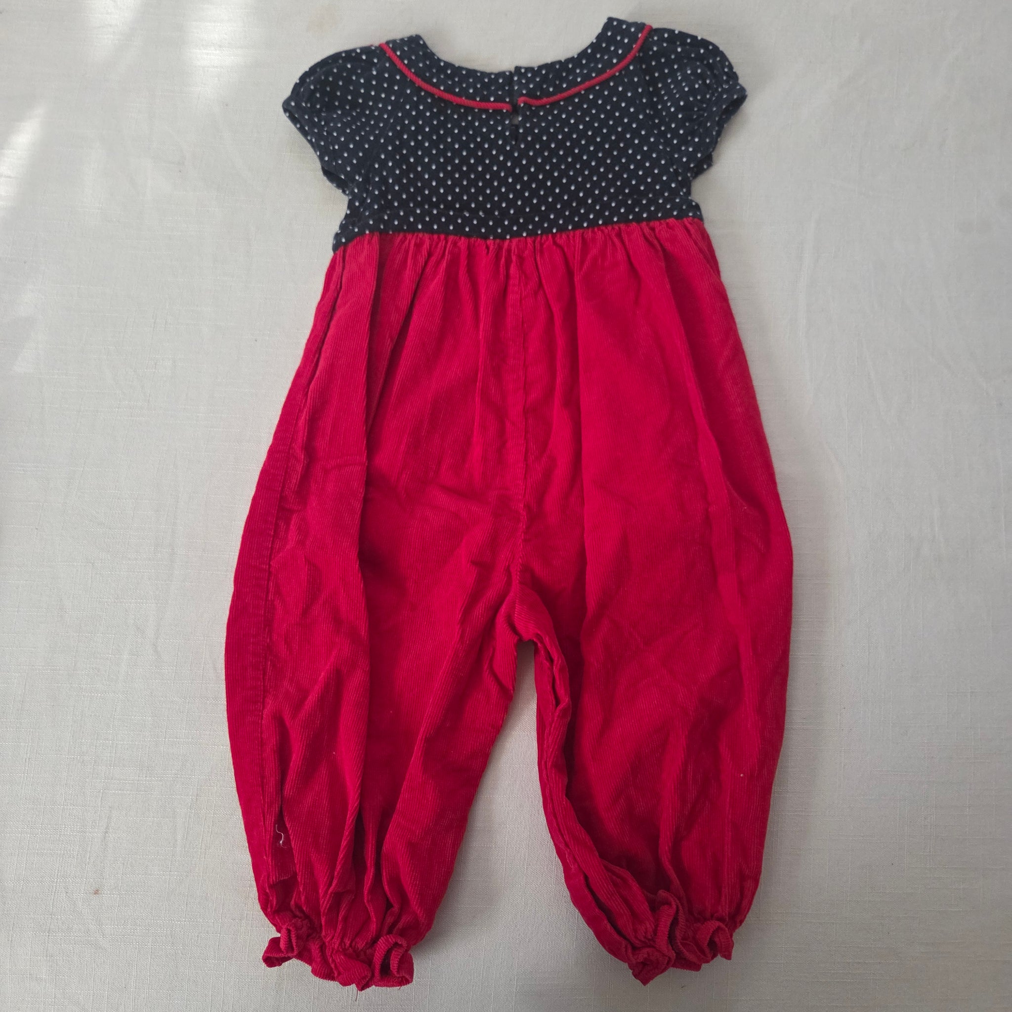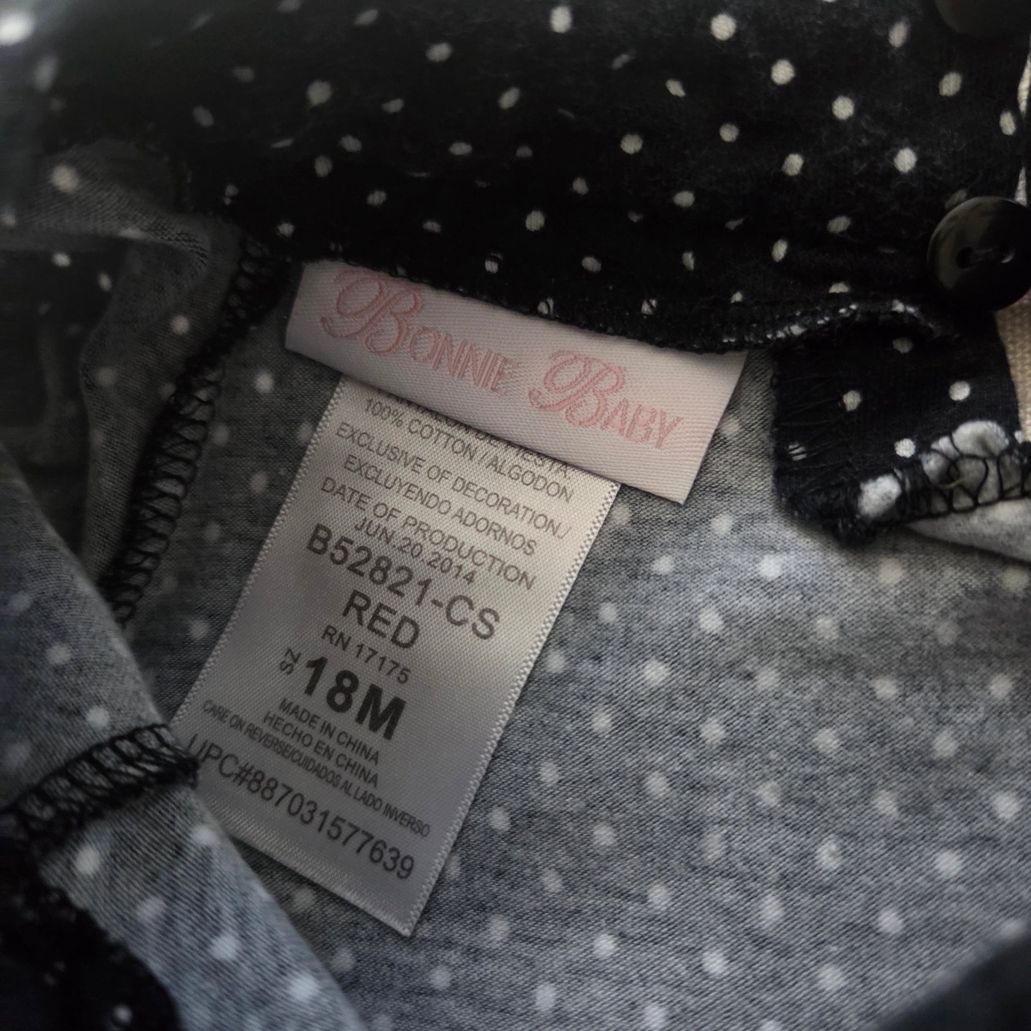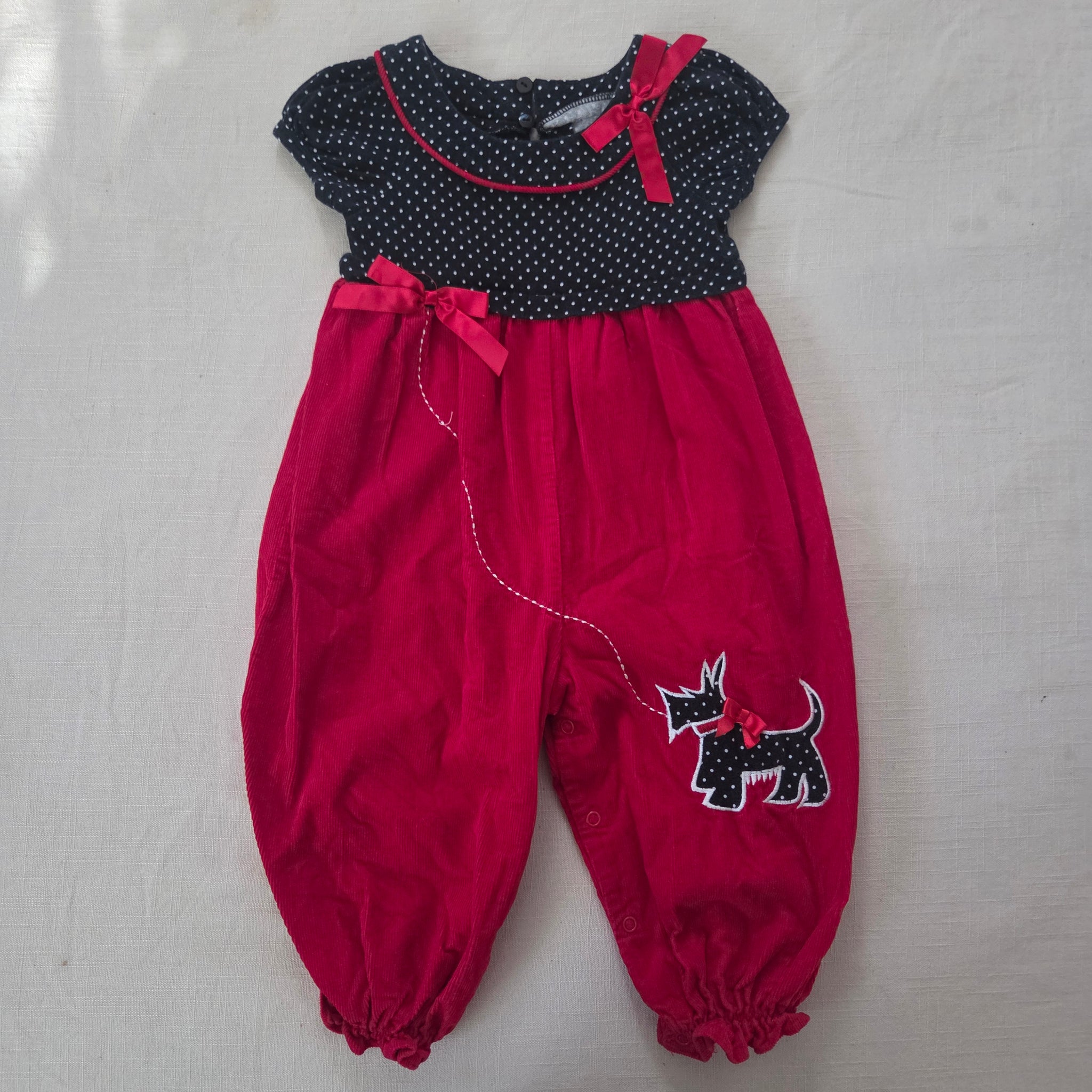 Y2k Bonnie Baby black and white polka dot and red pantsuit with Scottish terrier applique! Please see all photos for condition and measurements