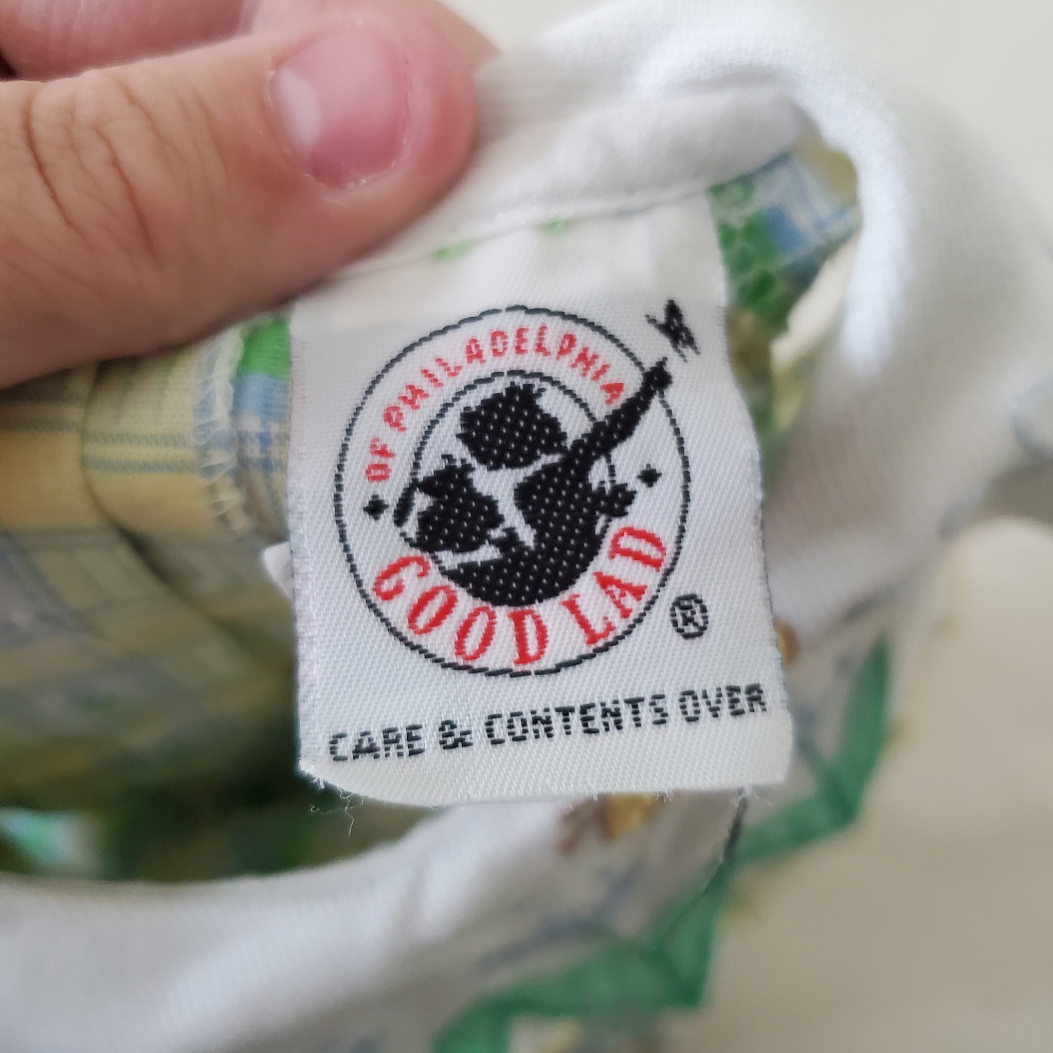 Vintage Goodlad brand green plaid & floral pattern dress or shirt with flower applique on chest! Please see all photos for condition and measurements