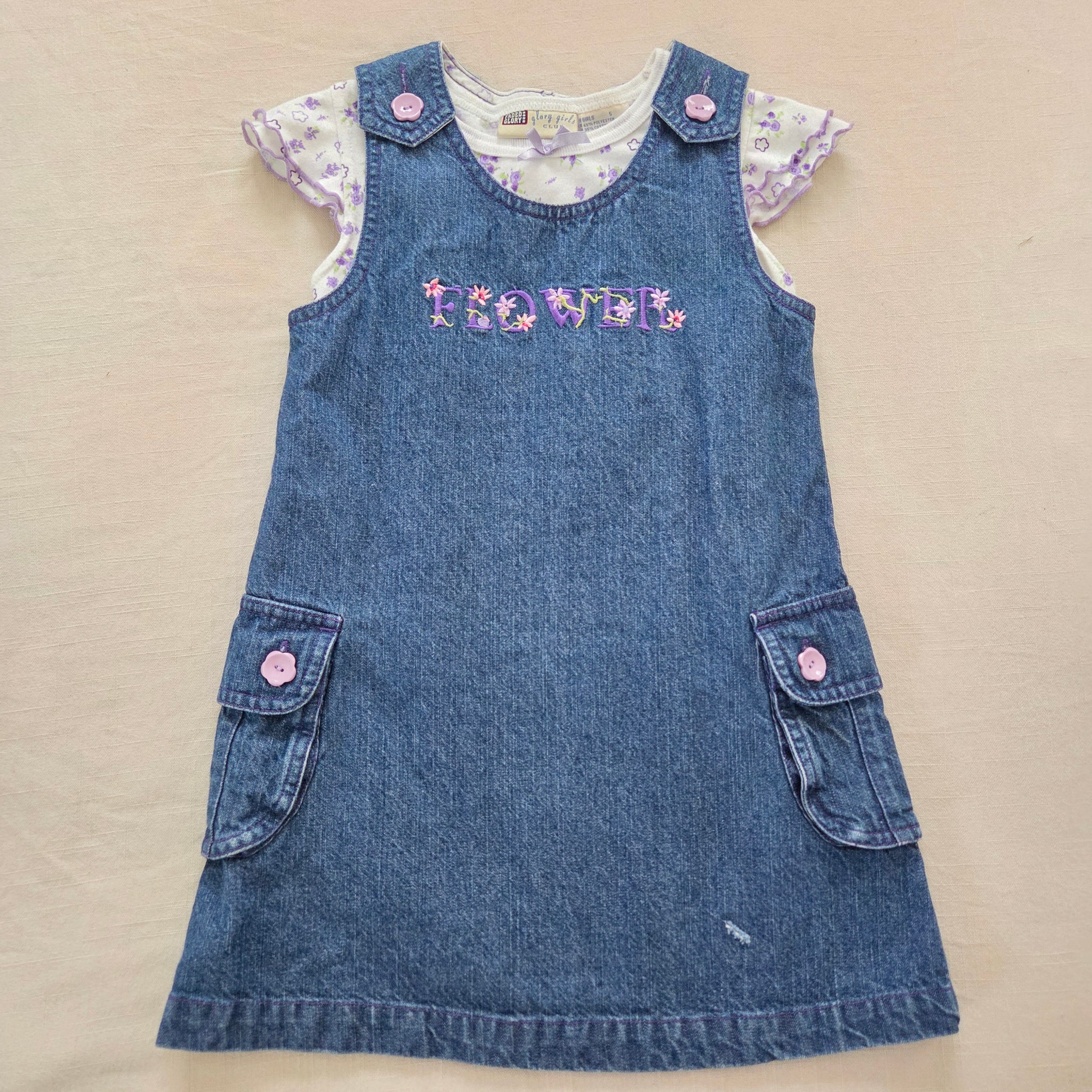Vintage Y2k Denim Dress + Shirt Set 5t