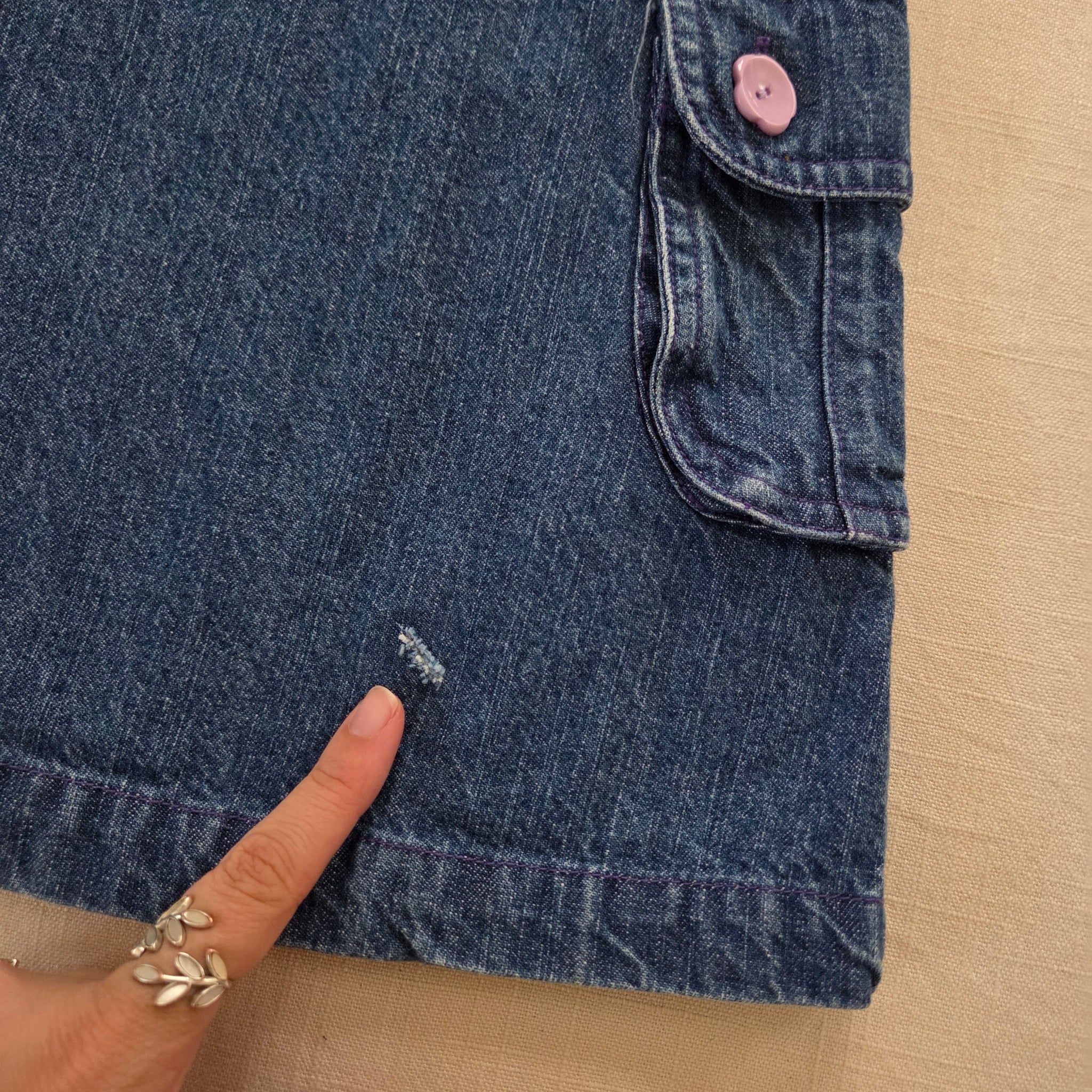 Vintage y2k era Faded Glory denim dress with flower detail and floral shirt matching set! Note the dress has a little frayed spot at bottom front shown. Please see all photos for condition and measurements