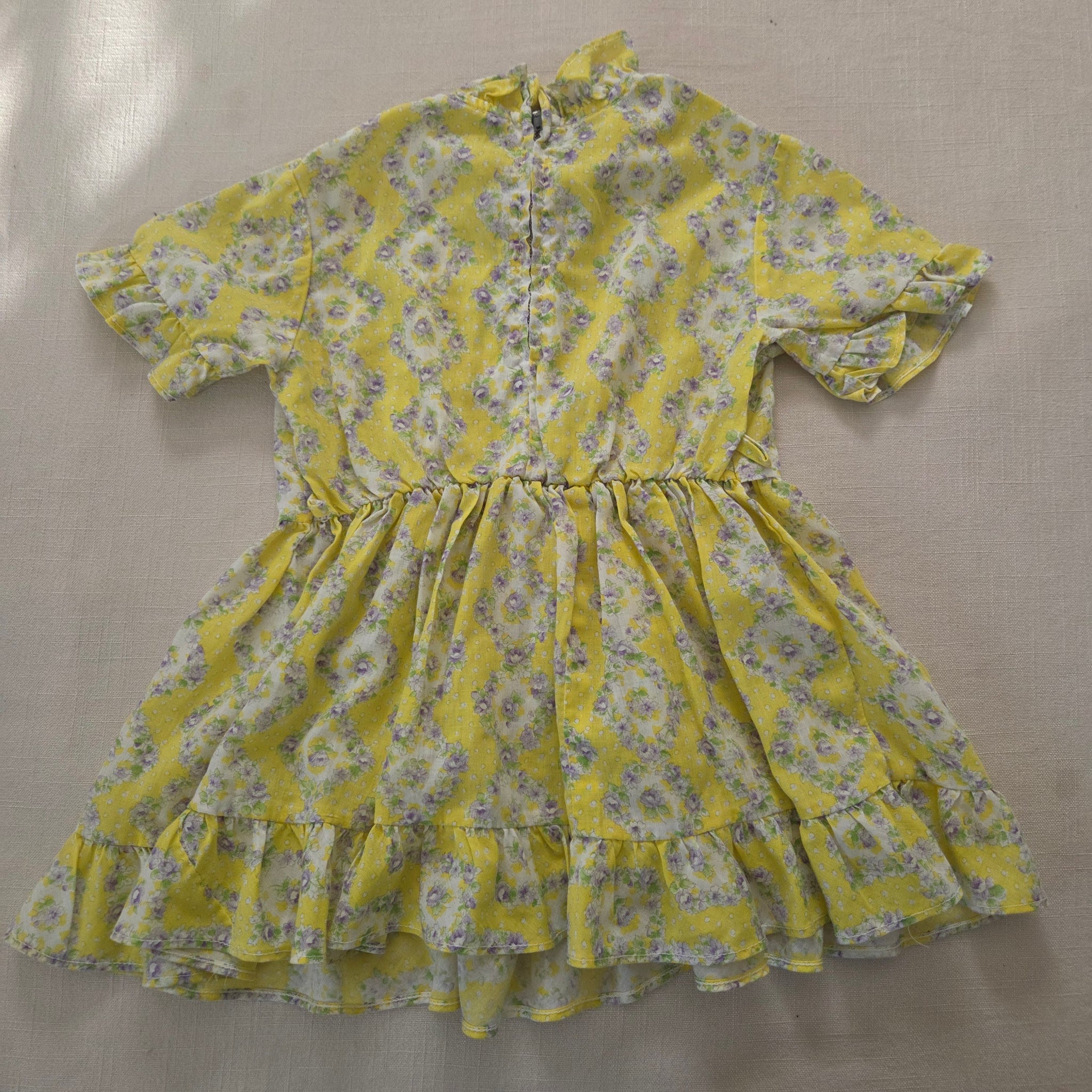 Vintage yellow floral print dress with ruffled high neck! Super pretty floral design! Please see all photos for condition and measurements