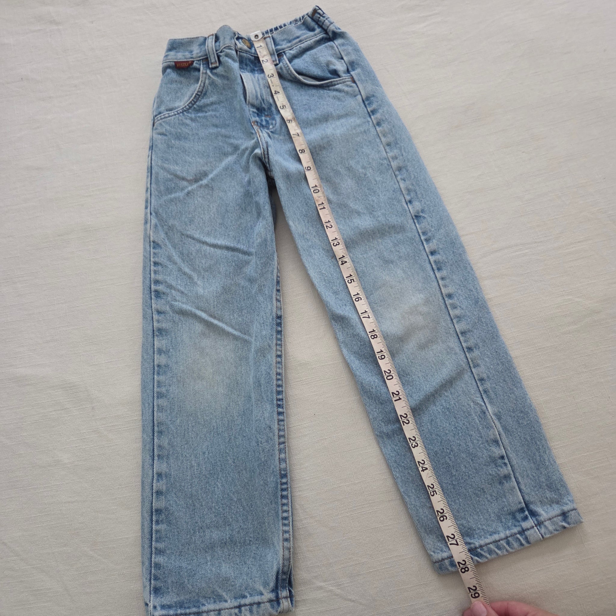 Vintage Rustler brand stone medium wash jeans with back elastic waist! Please see all photos for condition and measurements