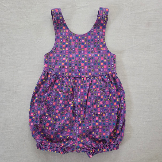Vintage 90s Purple Flower Pattern Bubble Romper 2t/3t