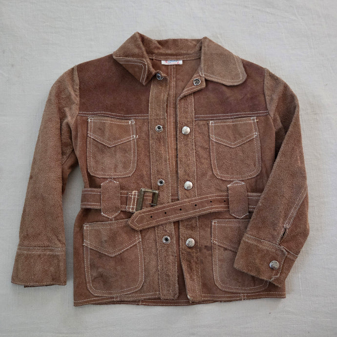 Vintage Brown Leather Belted Chore Jacket 4t