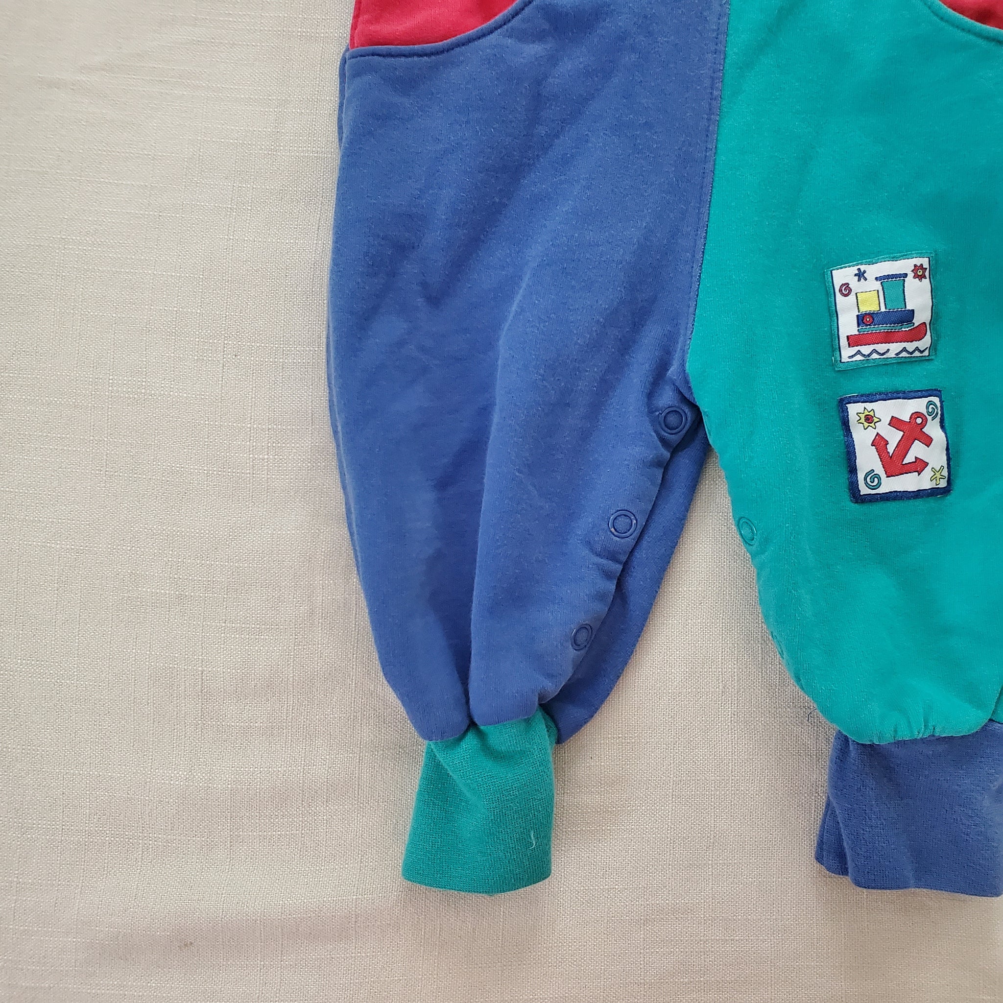 Vintage rainbow tag Gymboree color block overalls with sail and nautical patches! Please see all photos for condition and measurements