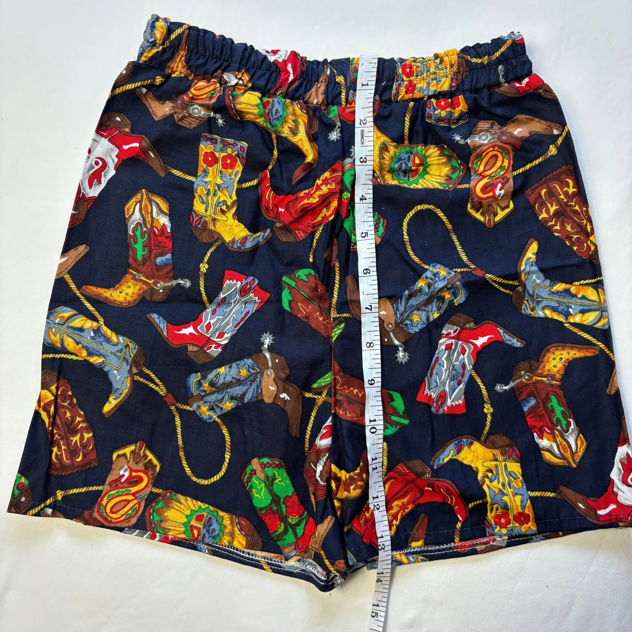 Vintage western cowboy boots pattern shorts with stretchy elastic waist! Please see all photos for condition and measurements