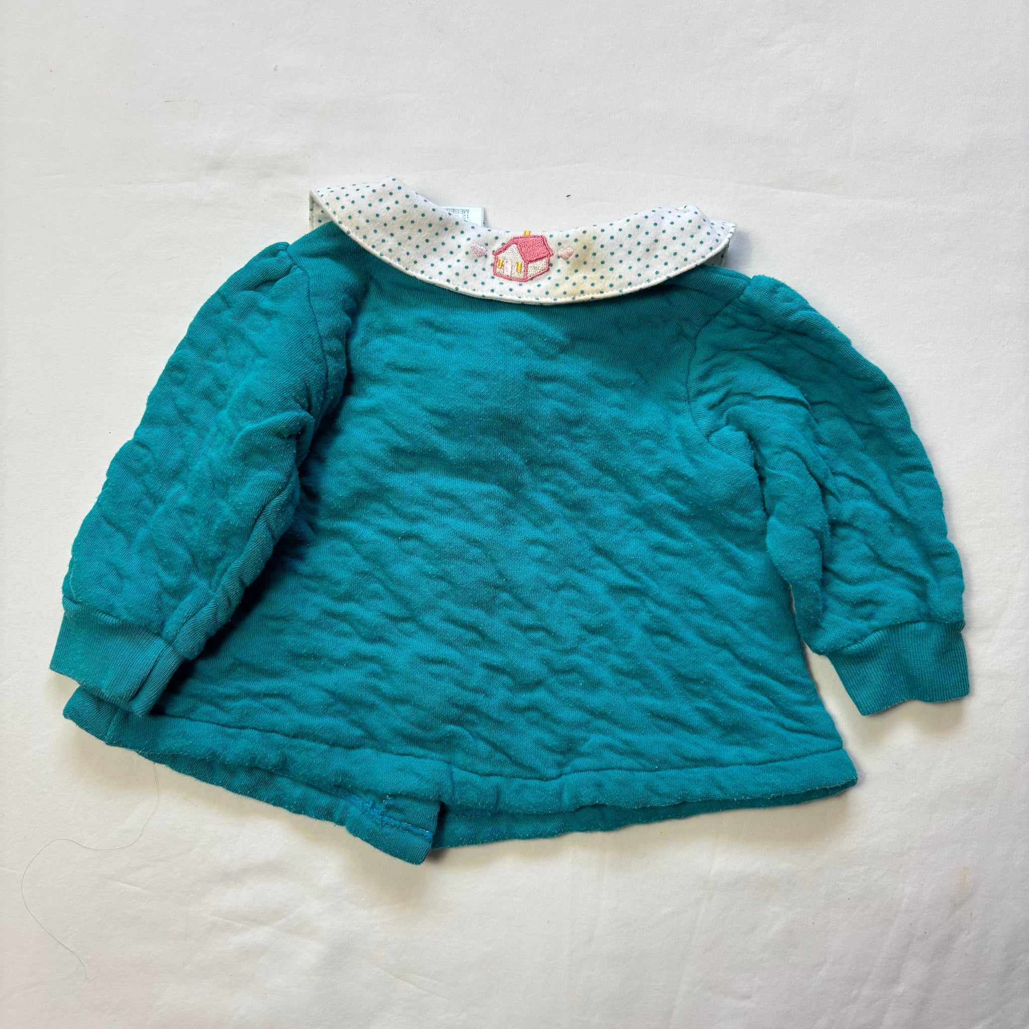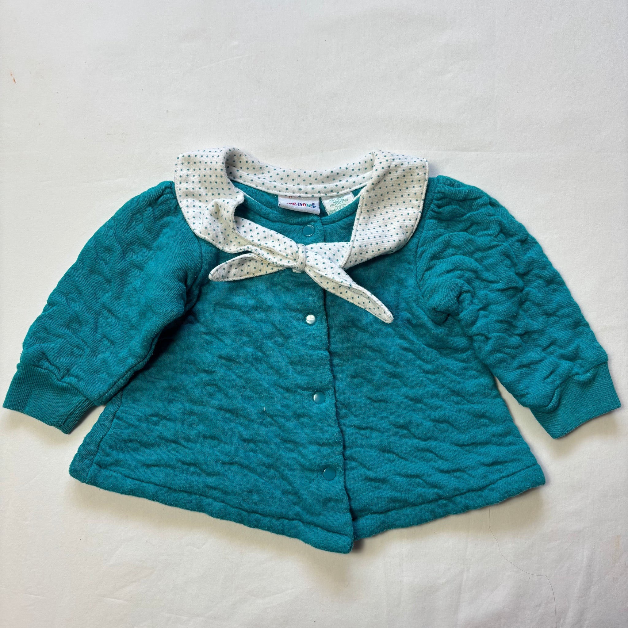 Vintage Okie Dokie teal quilted sweater with dotted tie collar! Please see all photos for condition and measurements