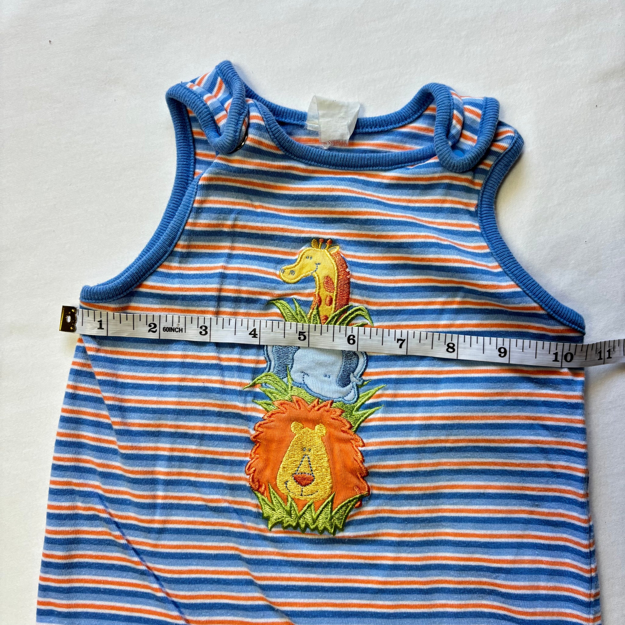 Vintage colorful striped romper with animals applique on chest! Please see all photos for condition and measurements