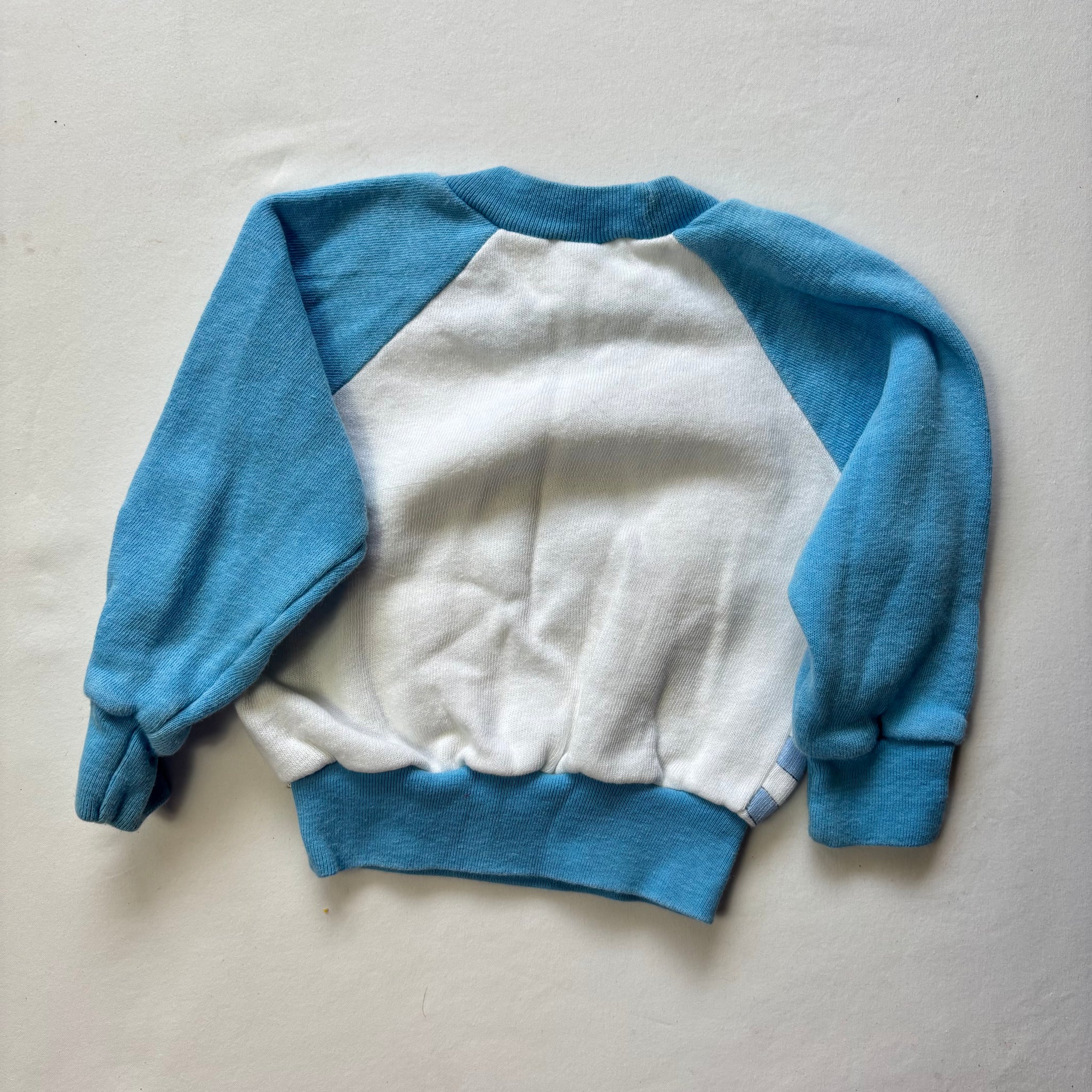 Vintage elephant jumping in track race blue and white crewneck sweater! Please see all photos for condition and measurements
