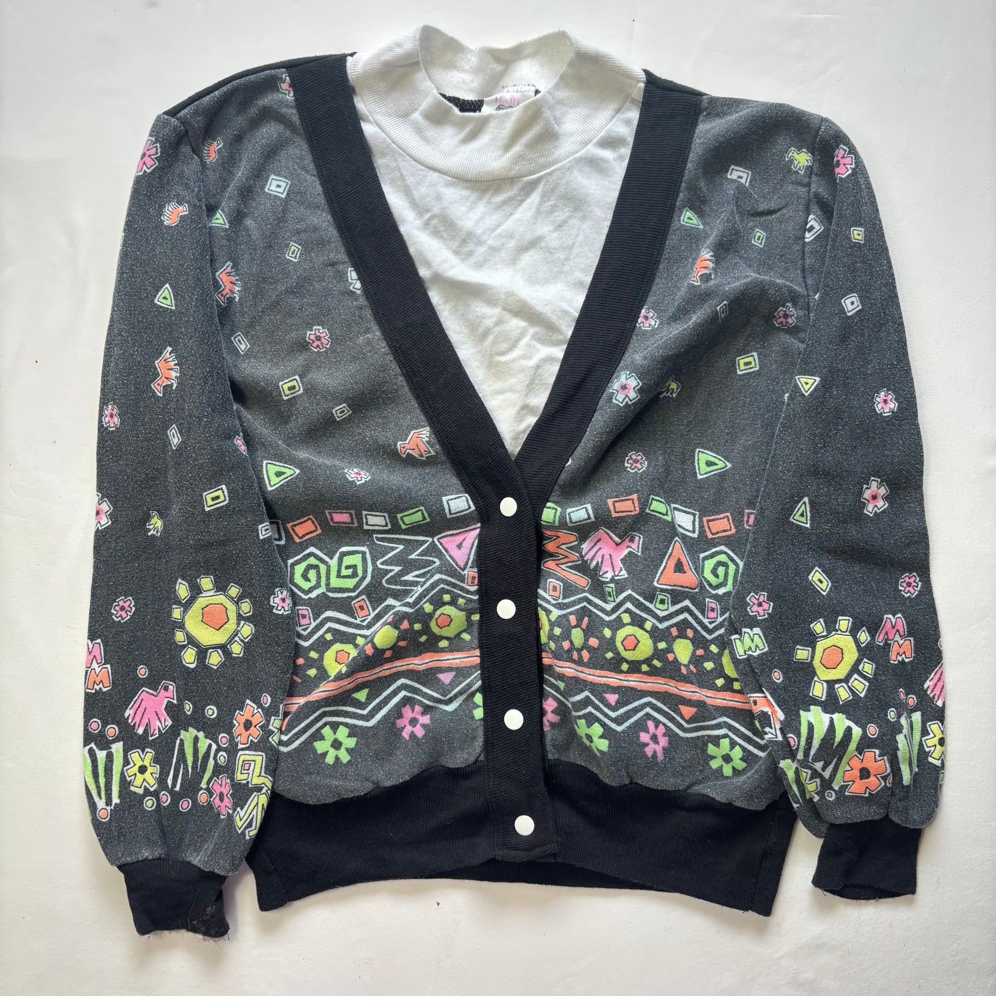 Vintage Hart Street brand black, gray, white, and neon pattern layered-looking sweater! Please see all photos for condition and measurements
