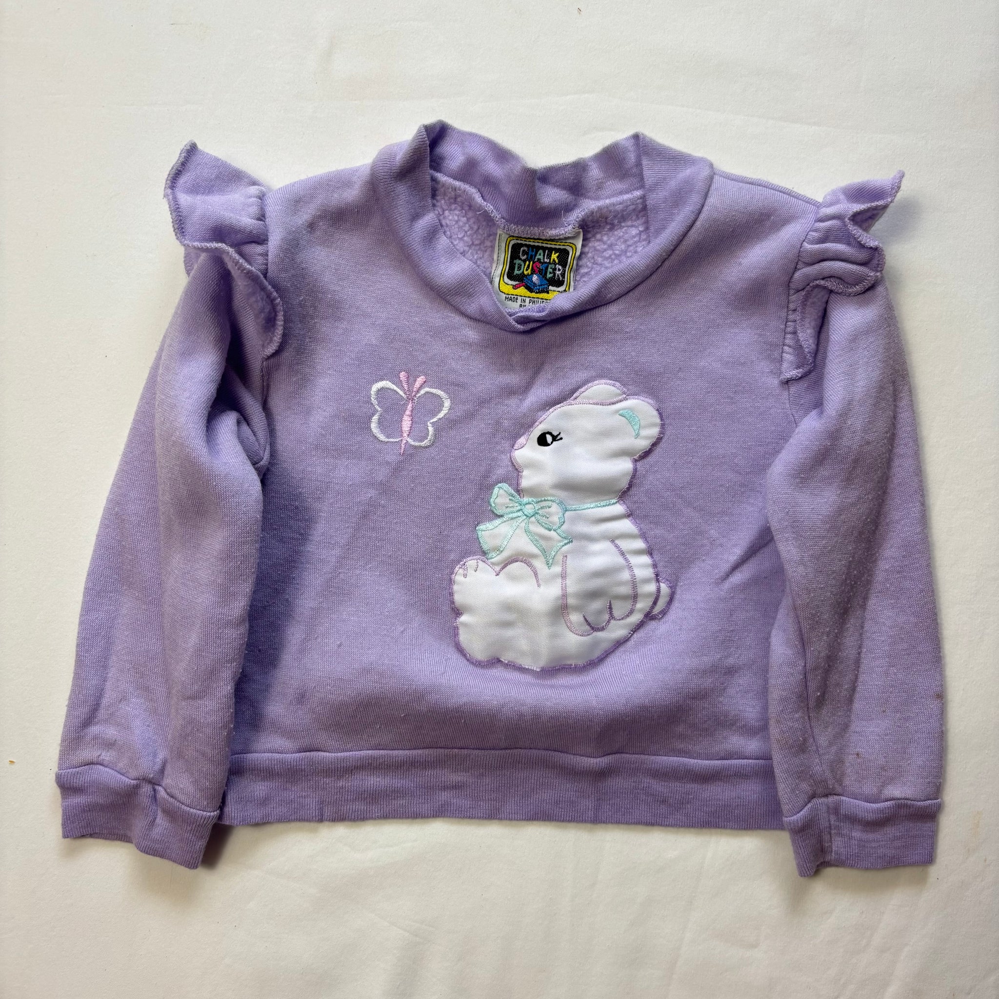 Vintage Chalk Duster brand purple sweater with ruffle sleeves and white bear looking at a butterfly! Please see all photos for condition and measurements
