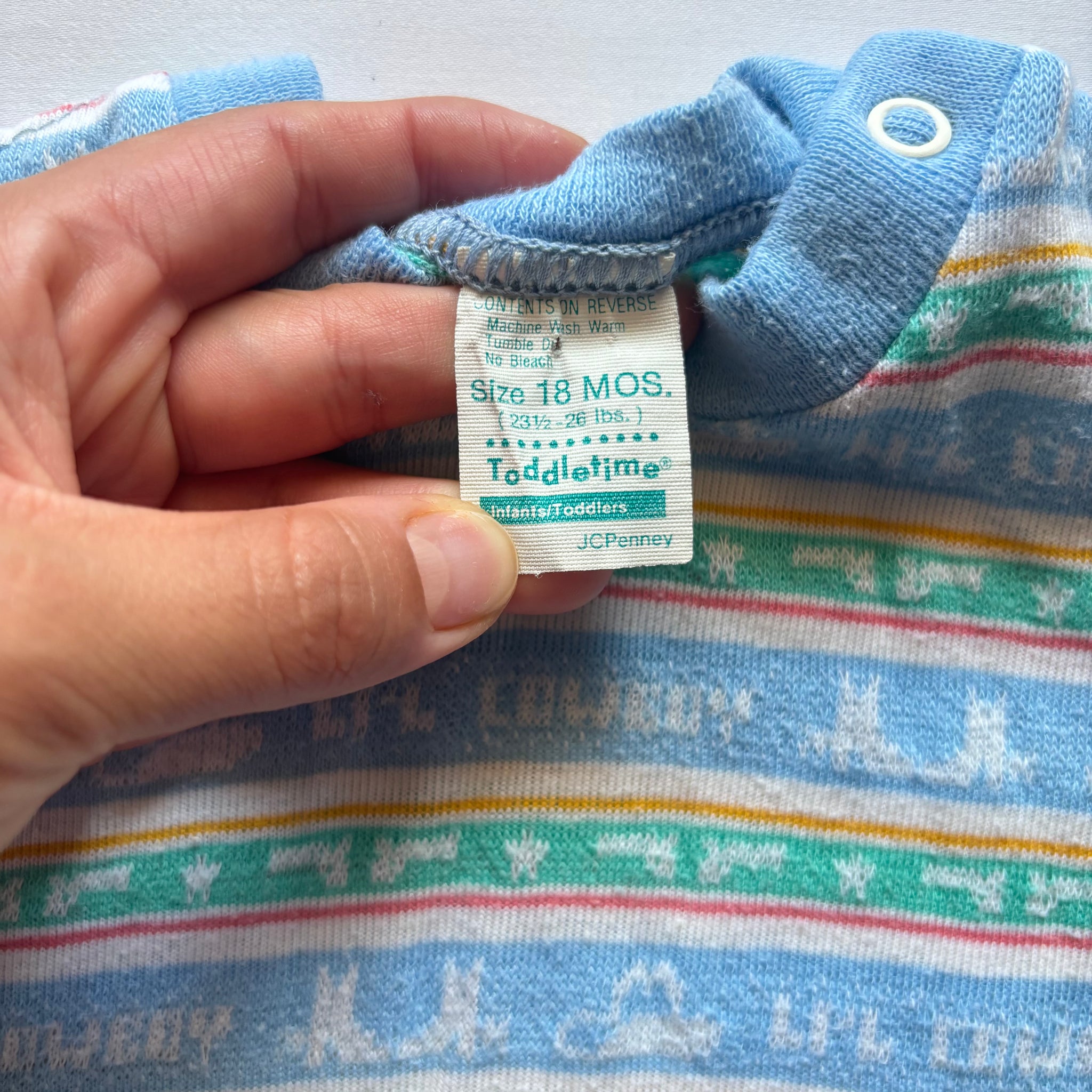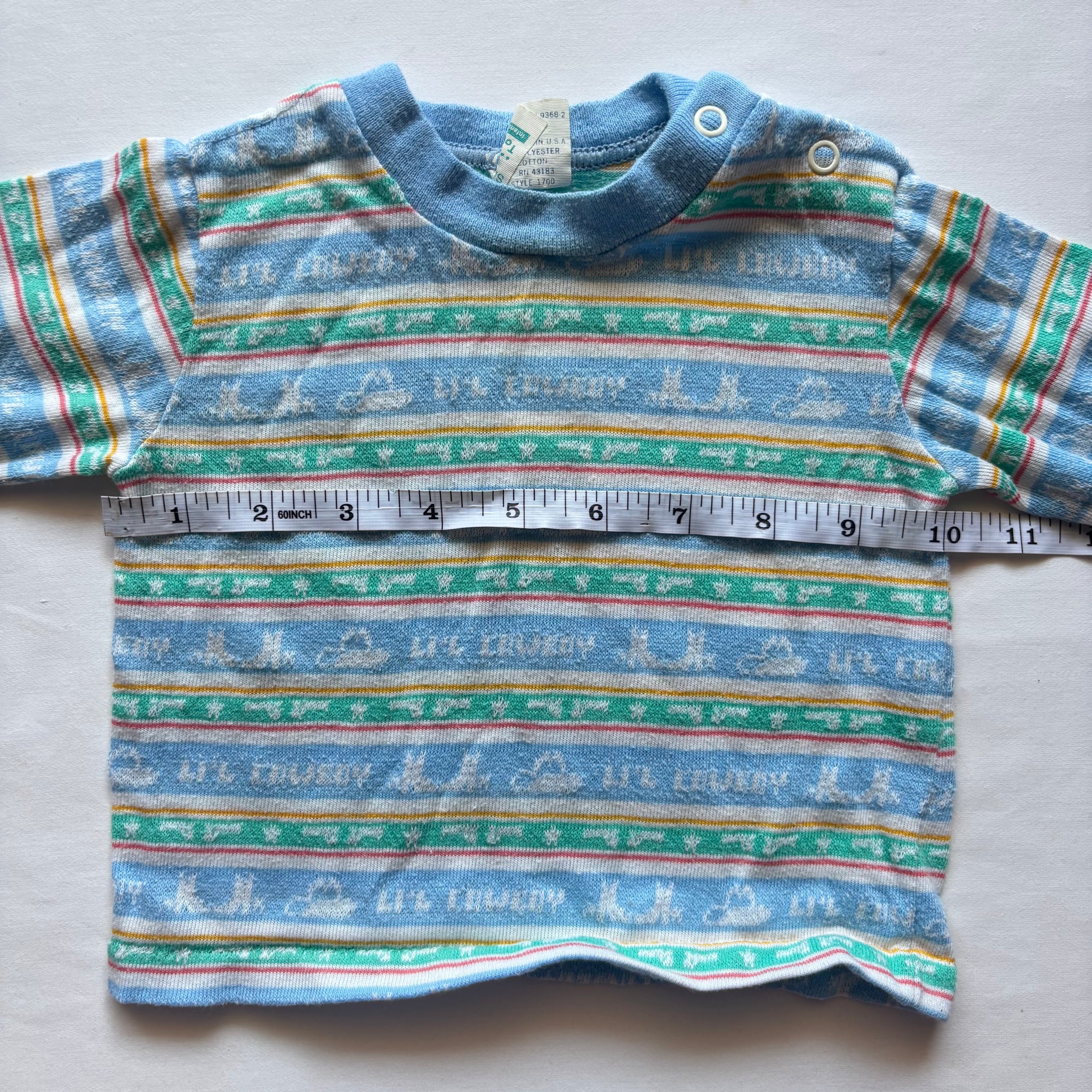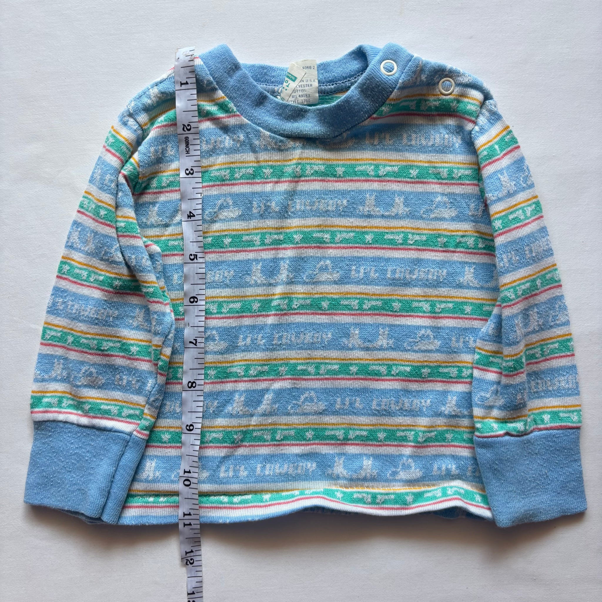 Vintage JcPenney Toddletime brand blue striped "Little cowboy" spellout homespun long sleeve shirt! Please see all photos for condition and measurements