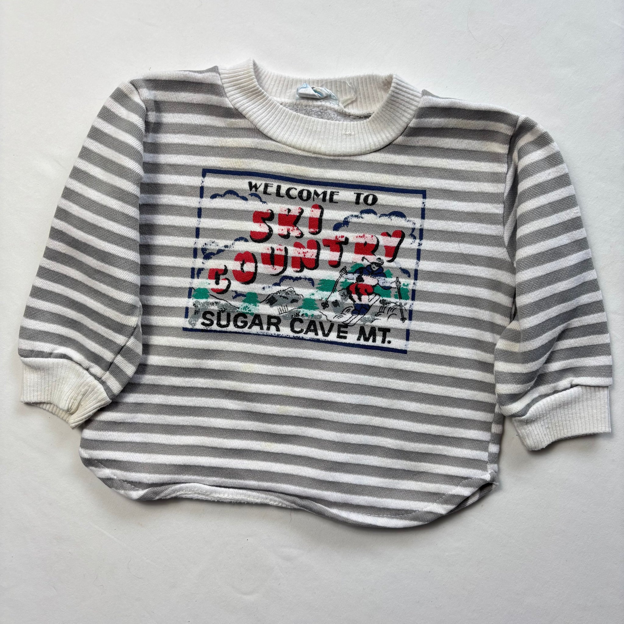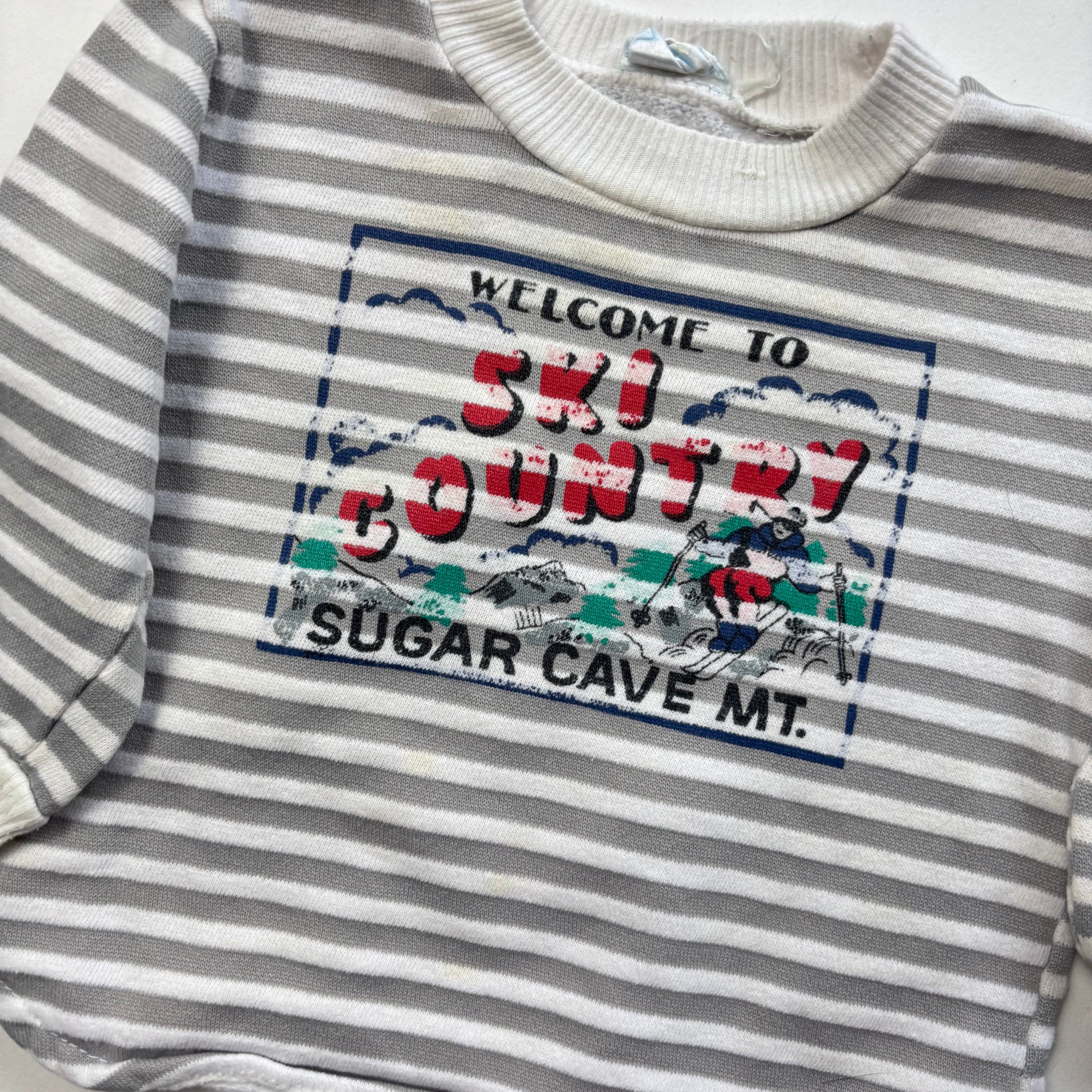 Vintage Small Star brand gray and white striped long sleeve shirt with "ski country" and "Sugar Cove Mt" on chest! Please see all photos for condition and measurements