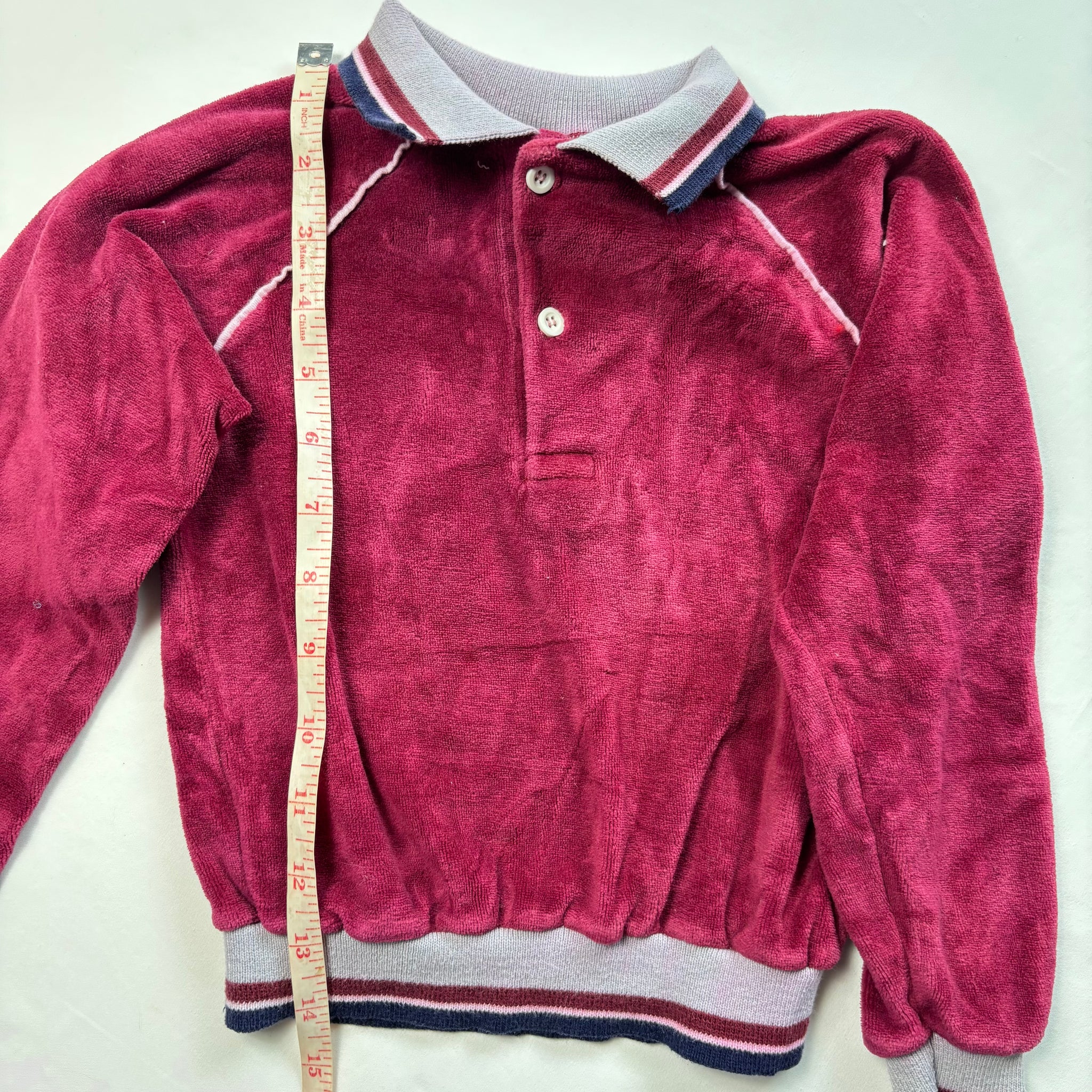 Vintage Sears brand red soft velour long sleeve shirt with collar! Please see all photos for condition and measurements