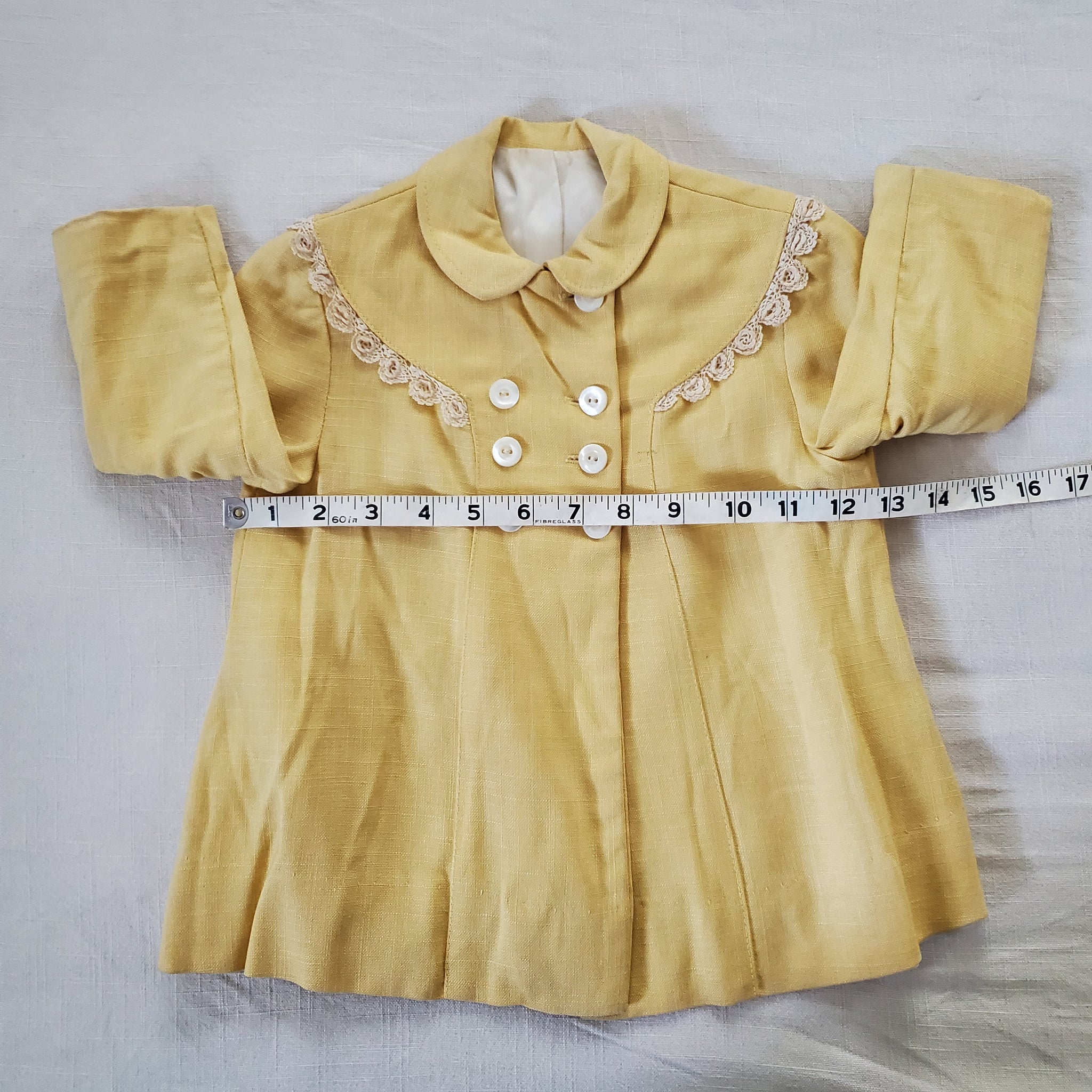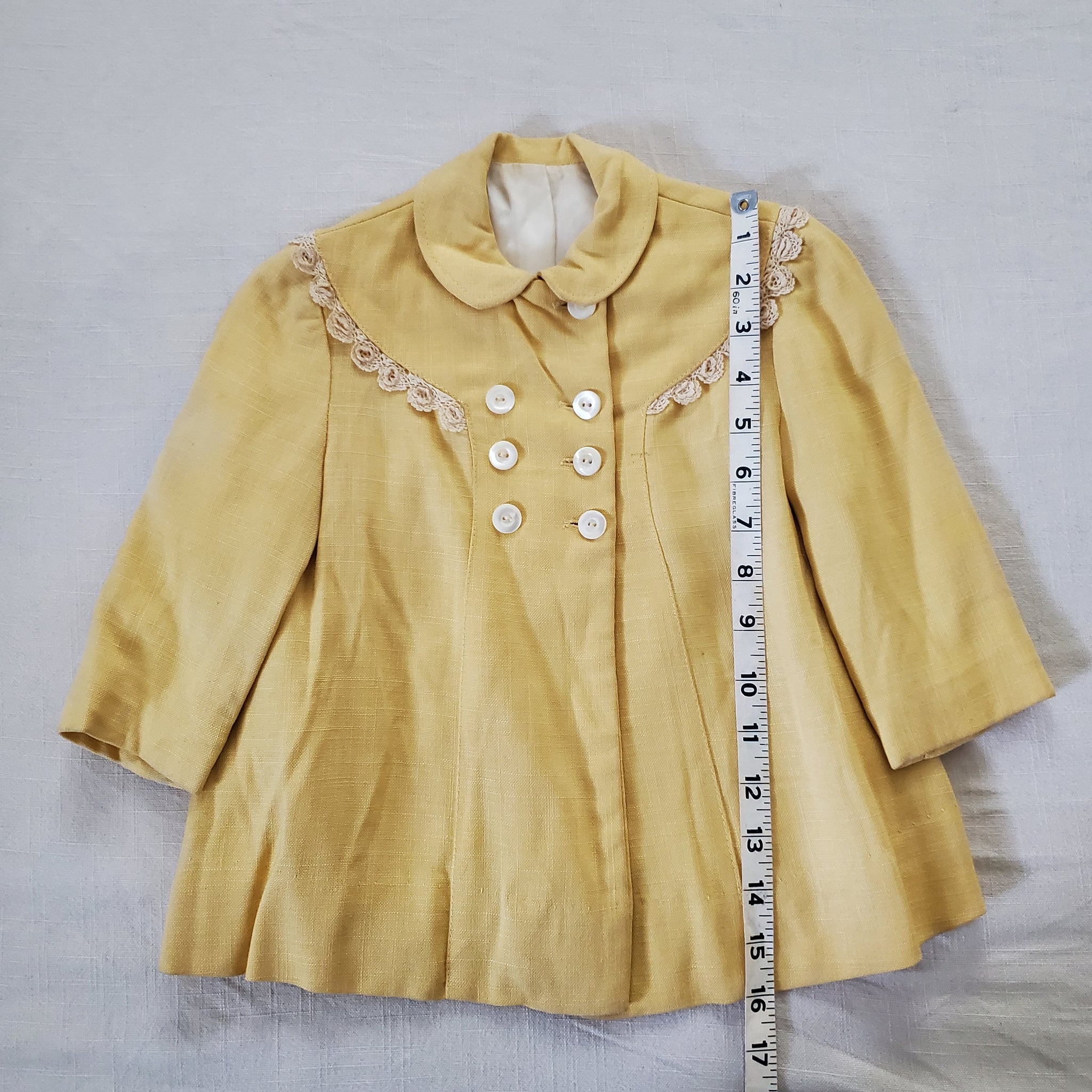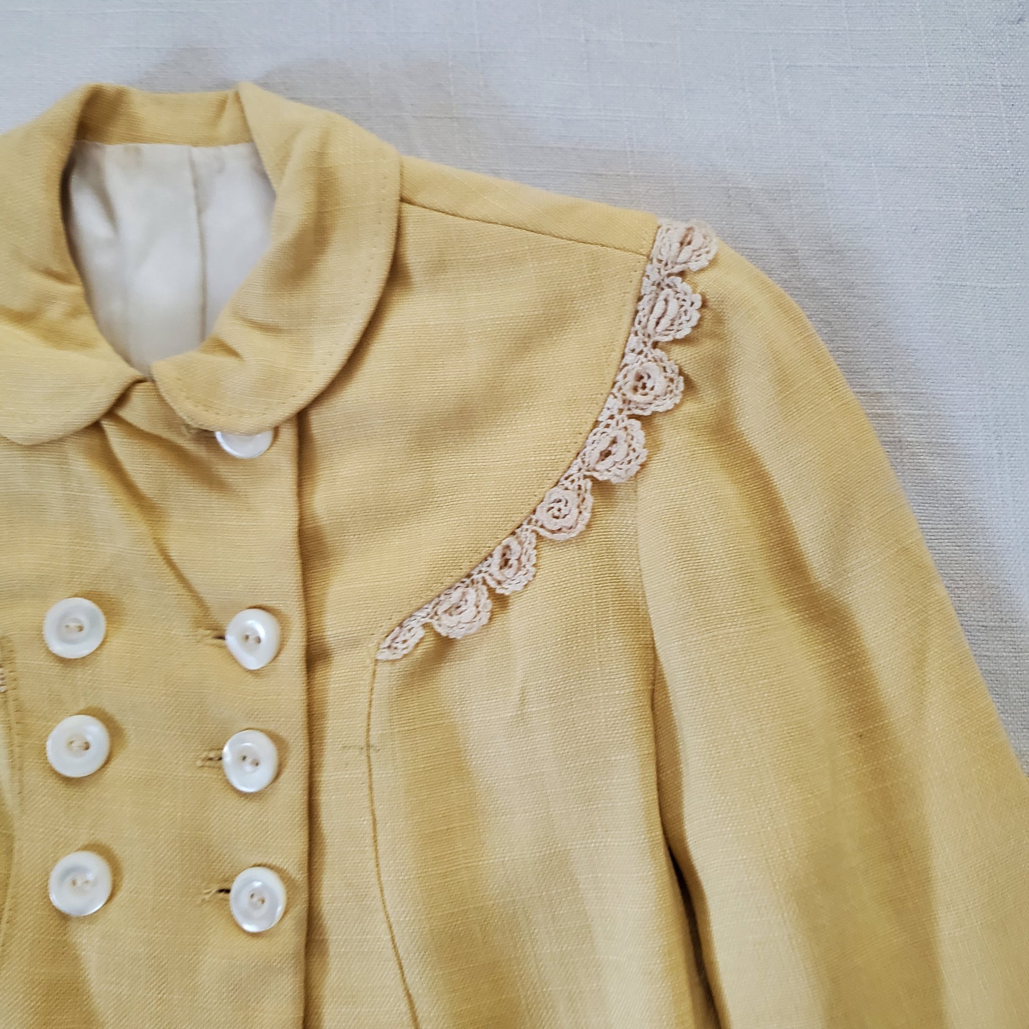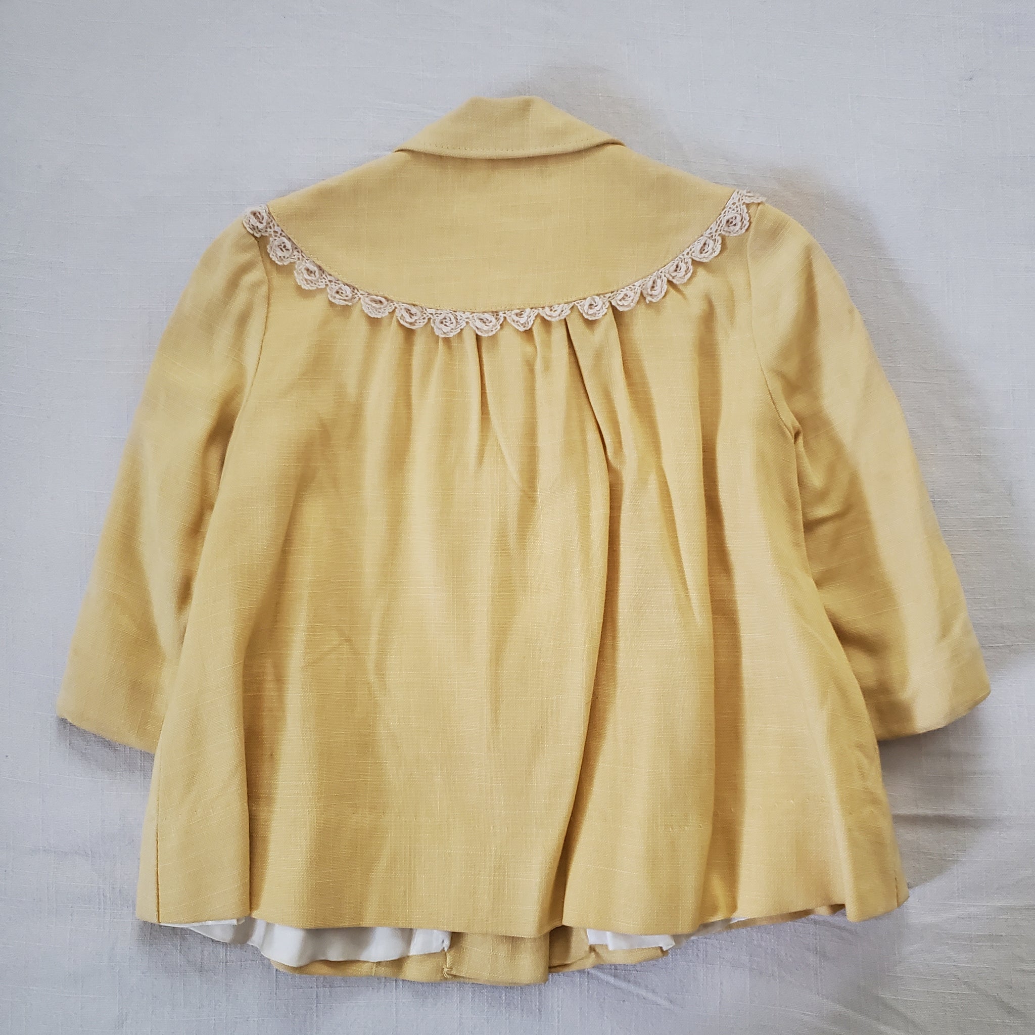 Vintage dark pale yellow dressy jacket or thin coat! Please see all photos for condition and measurements