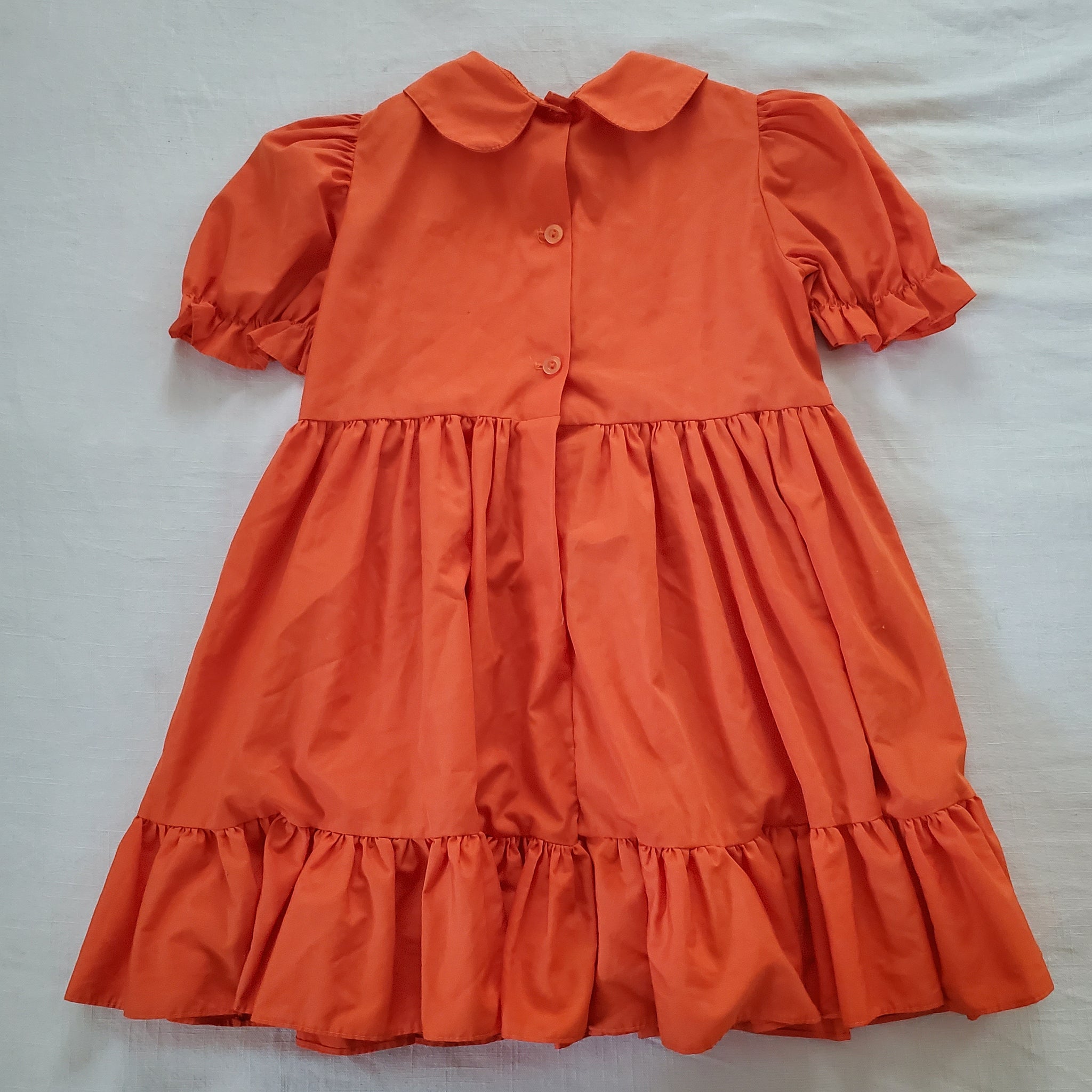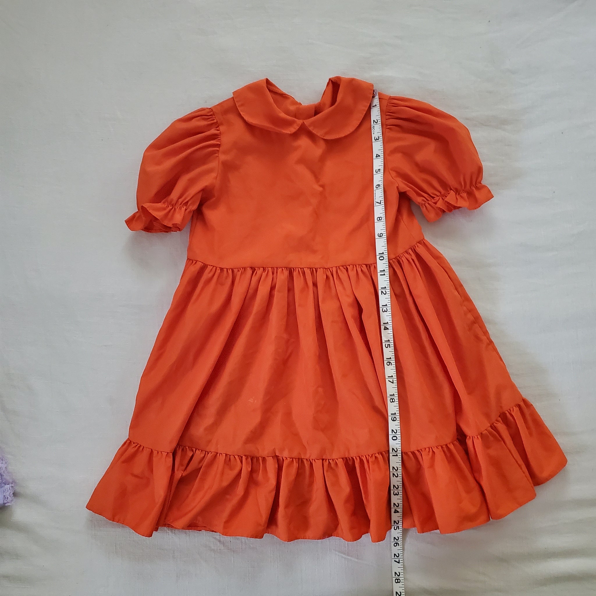 Vintage solid orange ruffled dress! Please see all photos for condition and measurements
