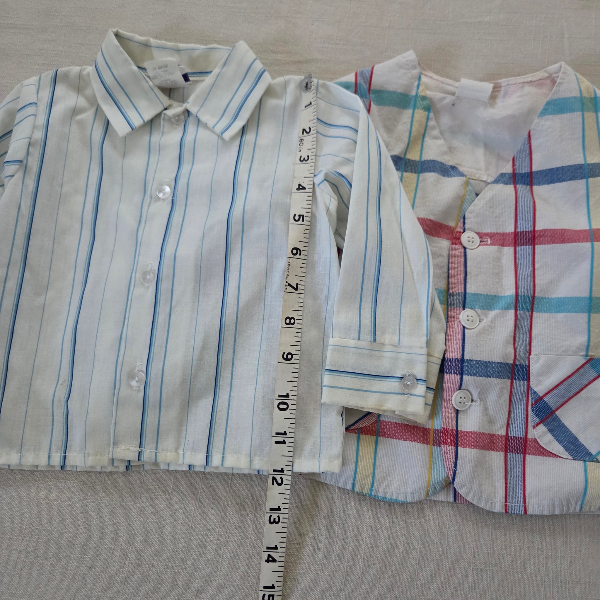 Vintage bundle of colorful plaid dressy jacket and striped buttondown long sleeve shirt! Please see all photos for condition and measurements