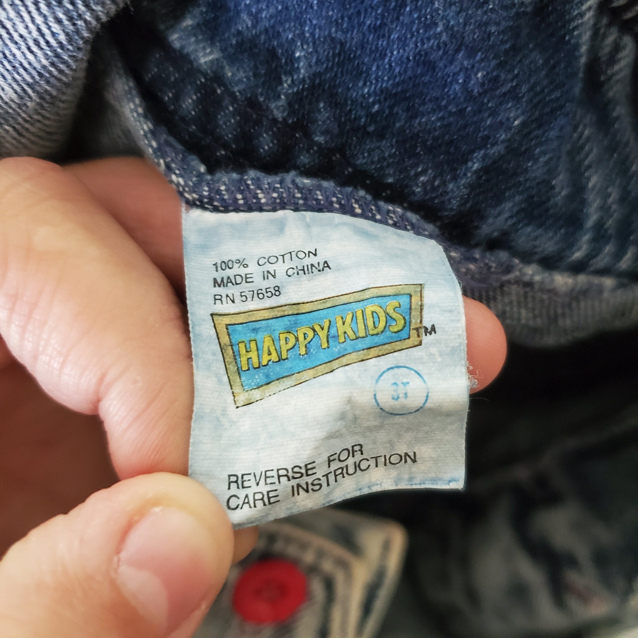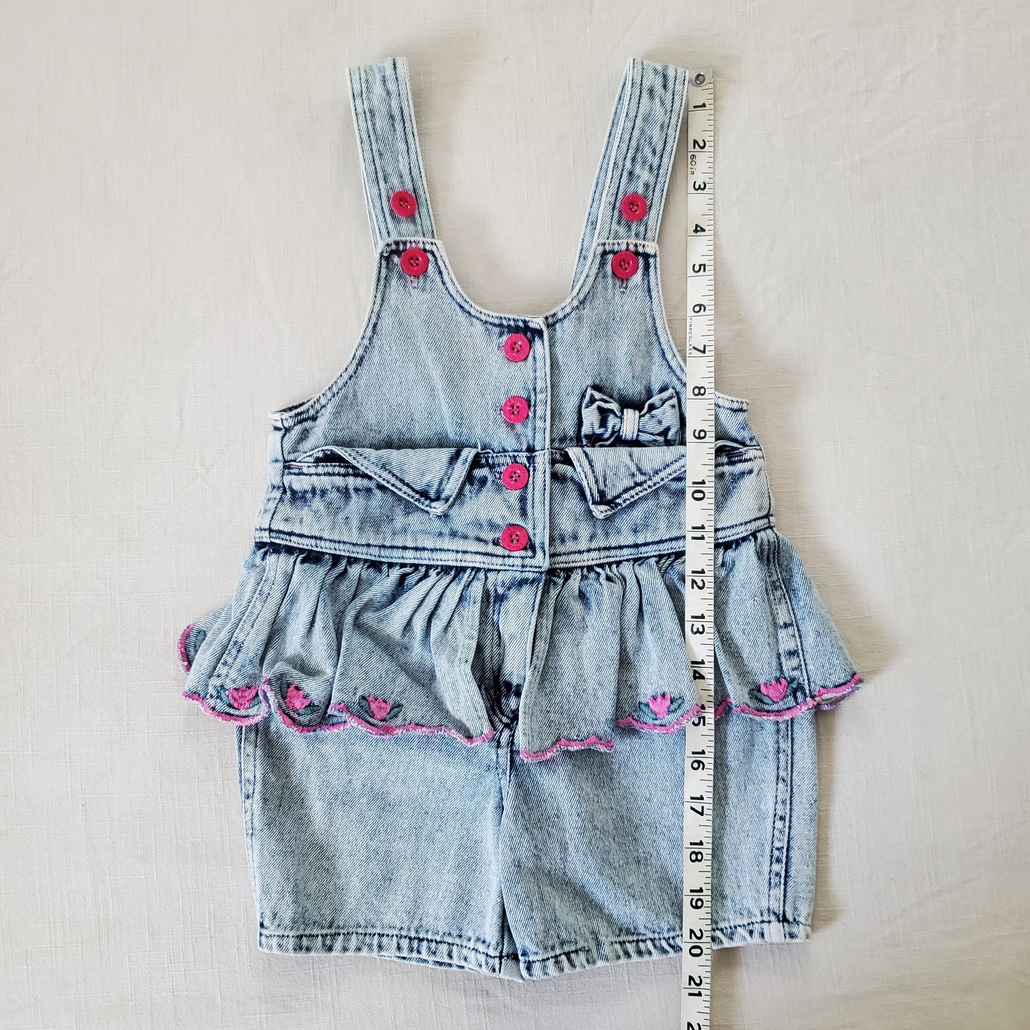 Vintage Happy Kids brand acid wash girly ruffled shortalls with pink details! Please see all photos for condition and measurements