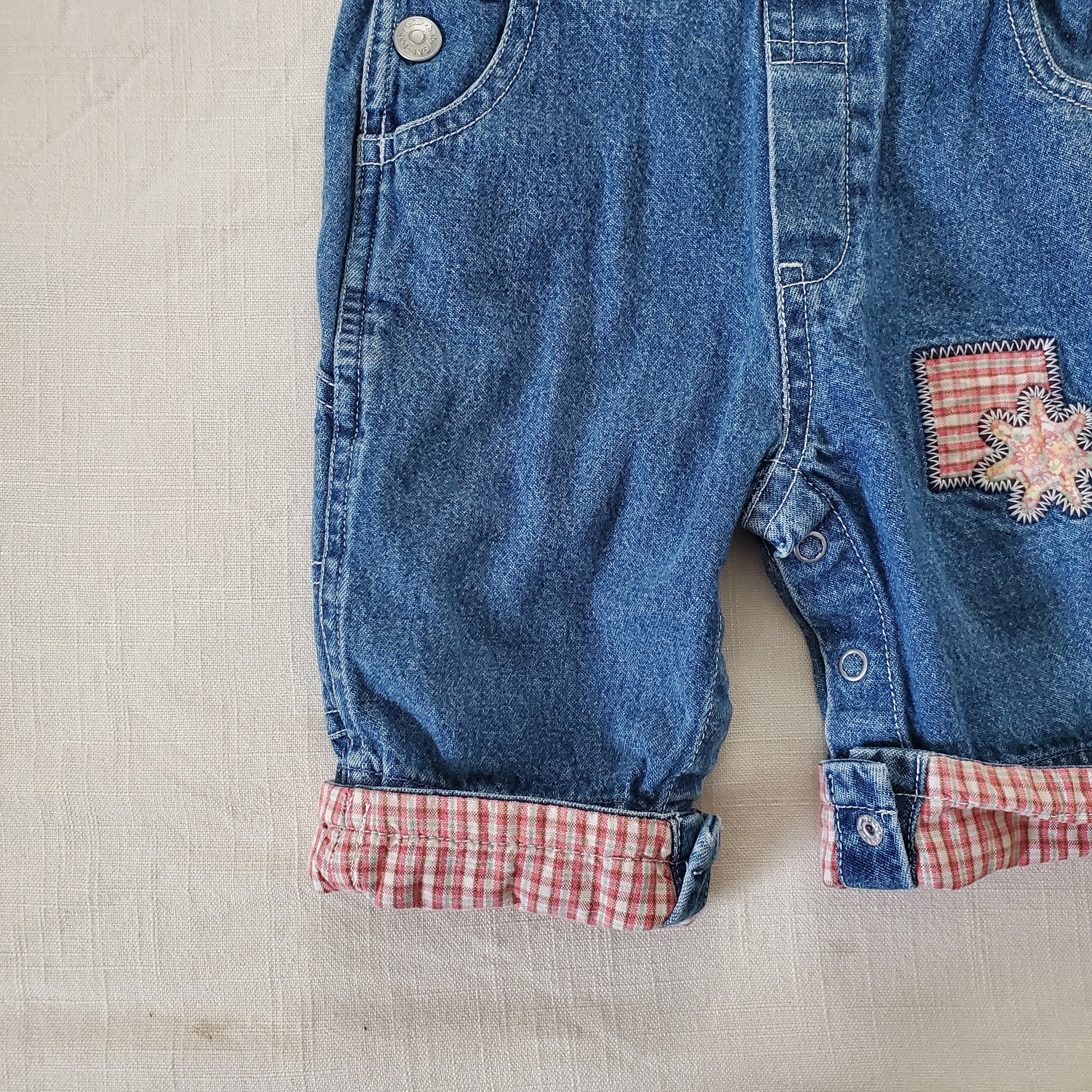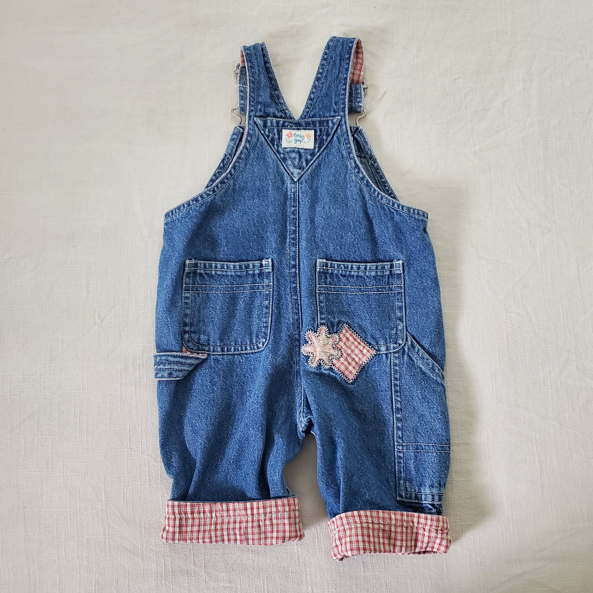 Vintage Gap denim and gingham detailed overalls with patches and butterflies! Please see all photos for condition and measurements