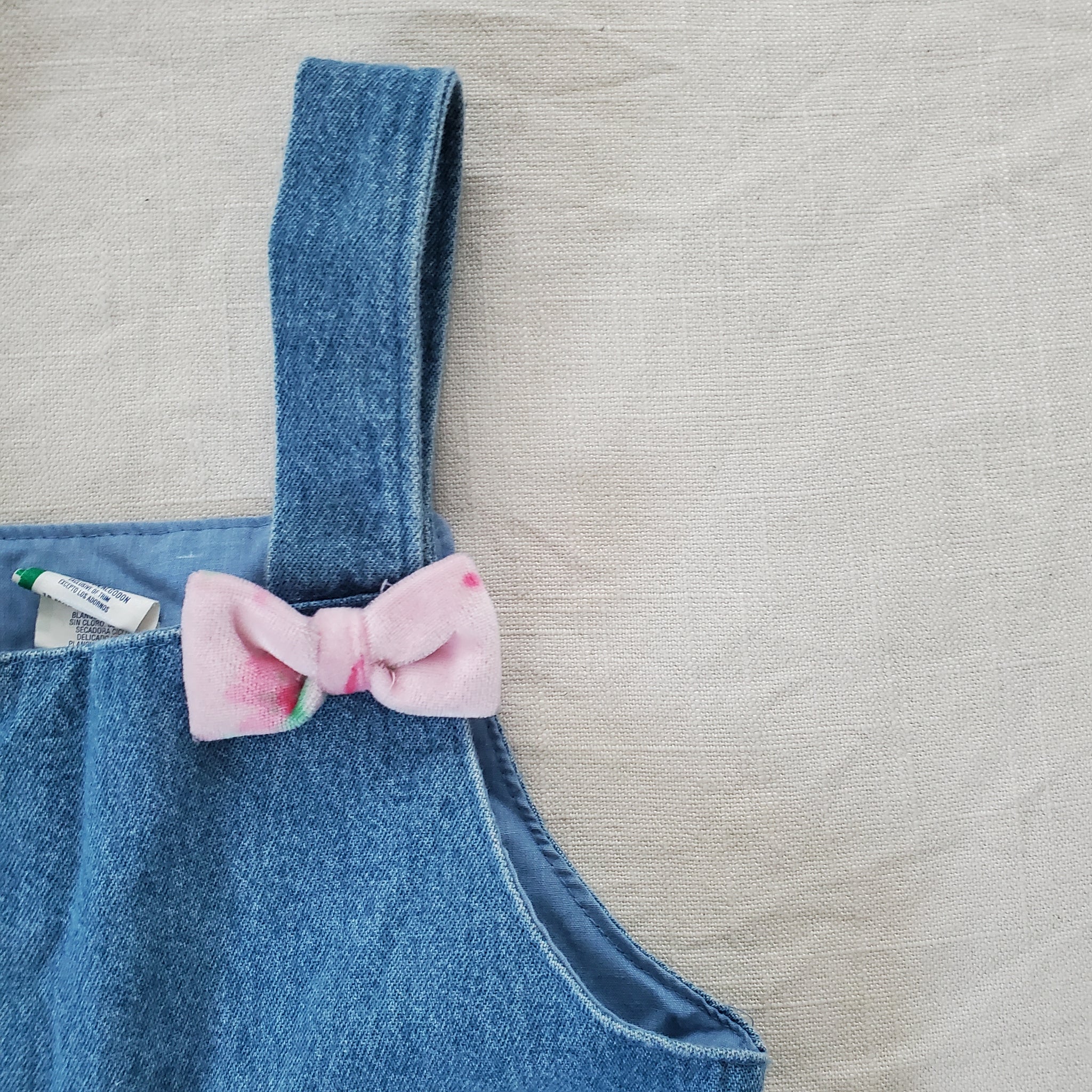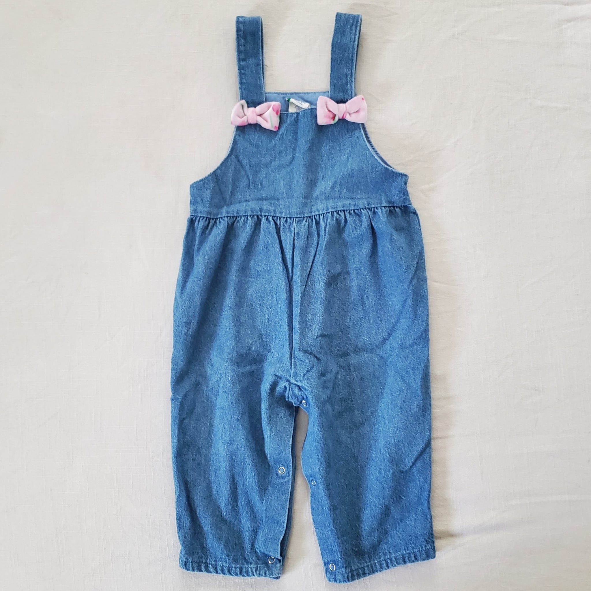 • Load image into Gallery viewer, Vintage Bow Denim Overalls 18 months