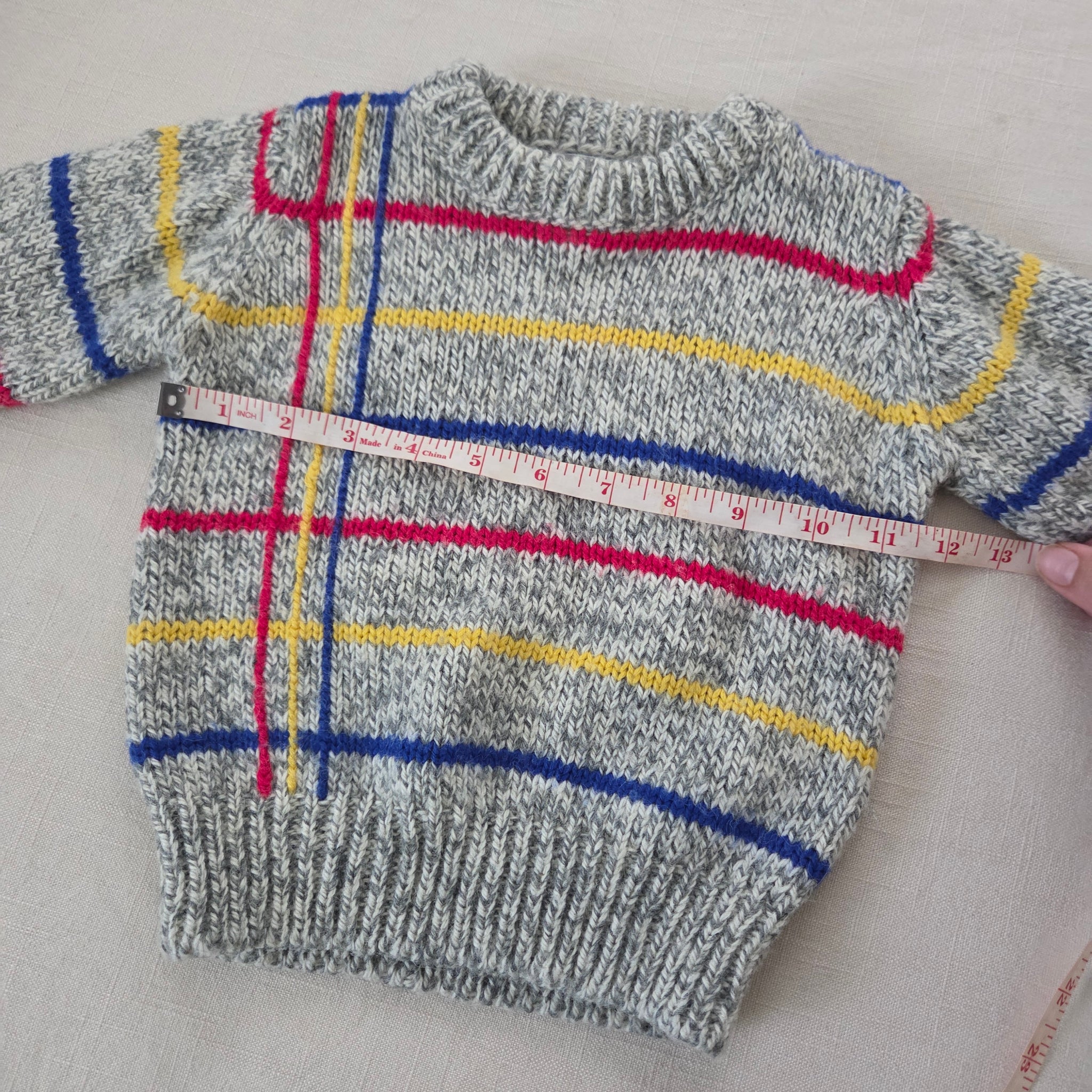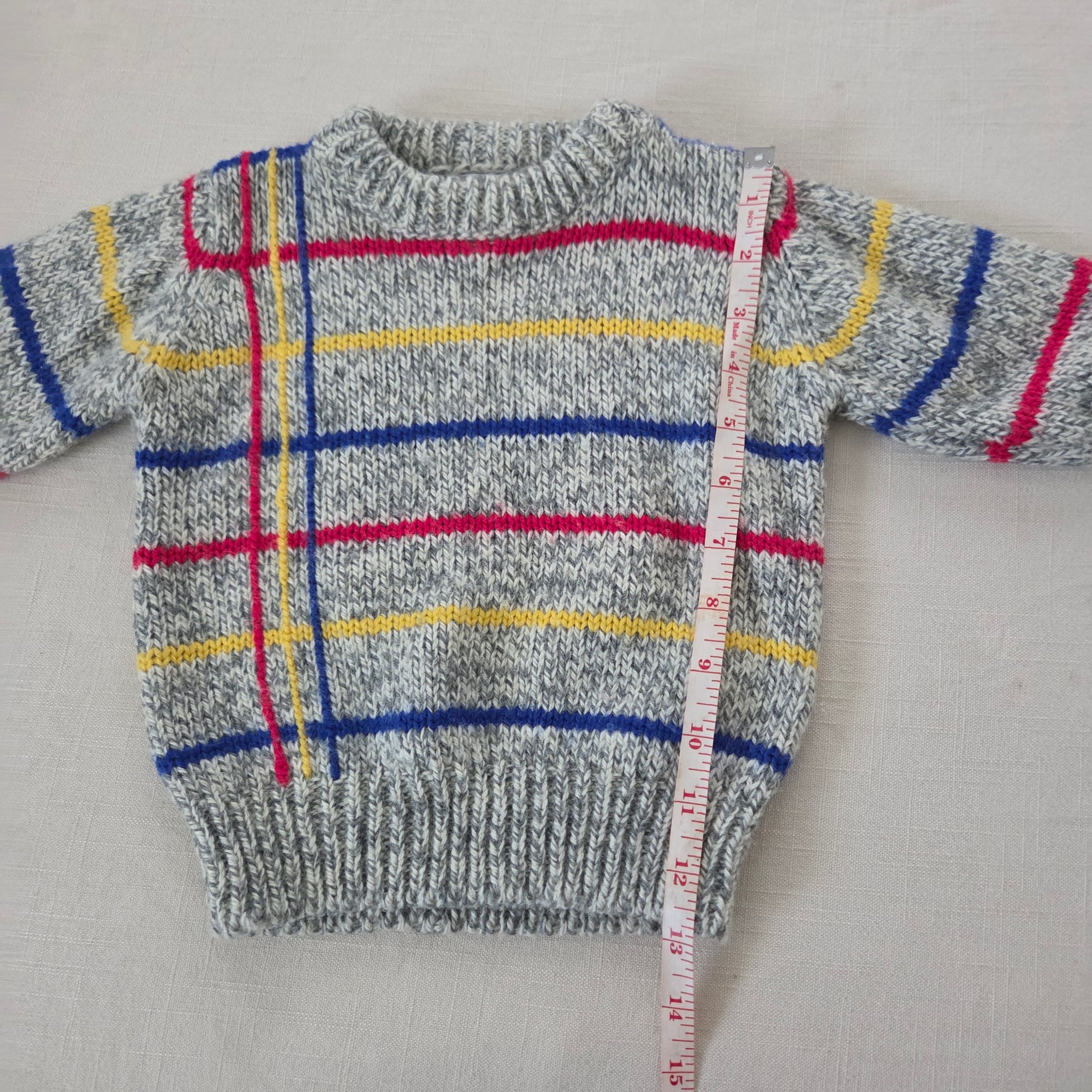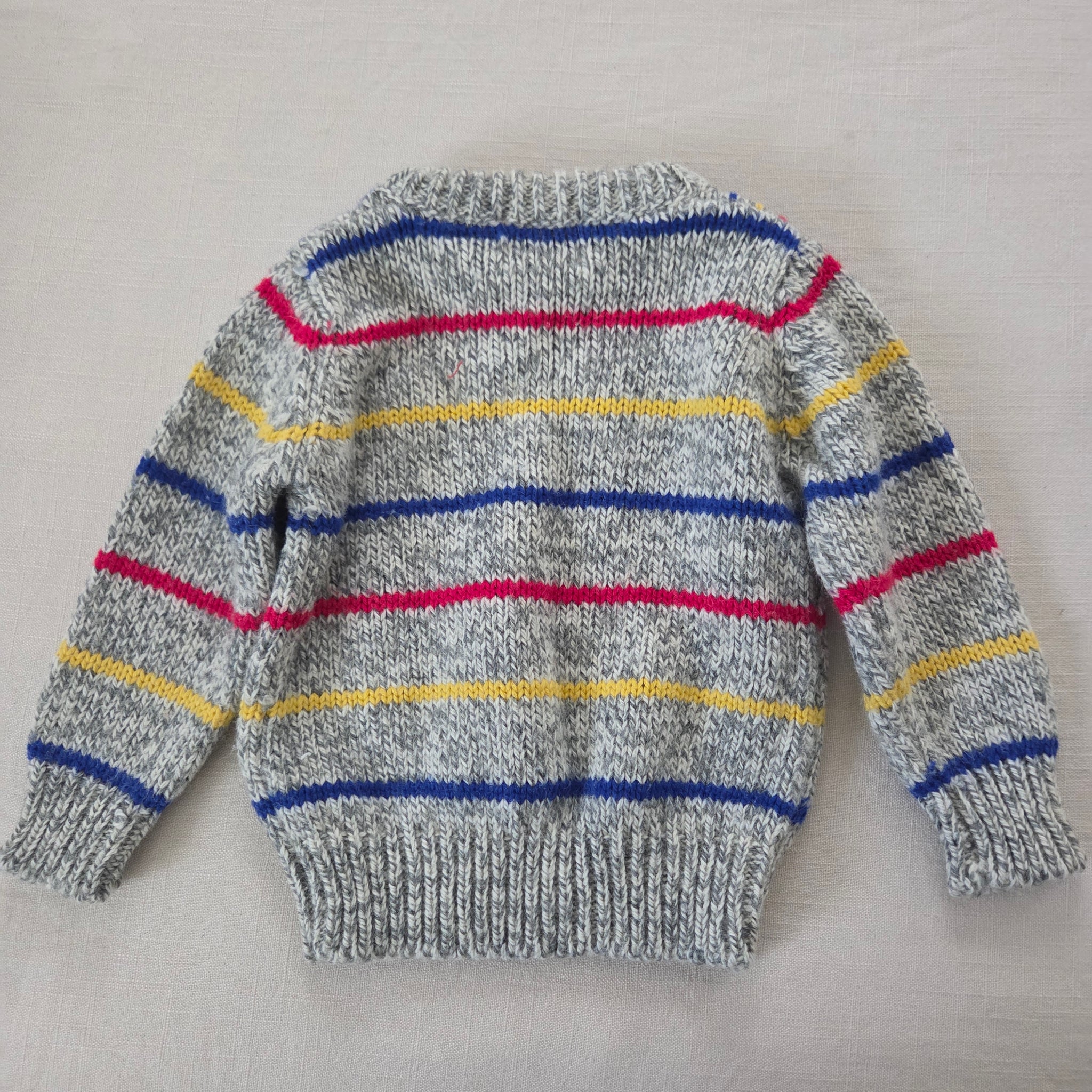 • Load image into Gallery viewer, Vintage Primary Striped Gray Knit Sweater 2t