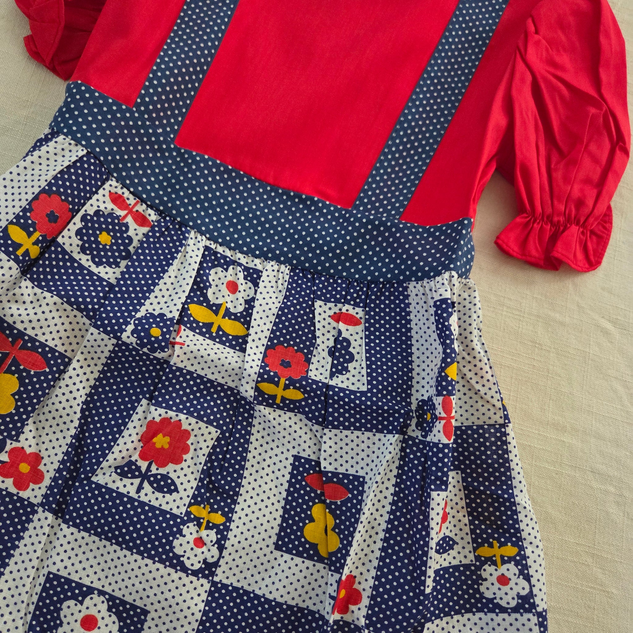 Vintage new without tags Montgomery Ward brand red and navynblue flower pattern dress! Please see all photos for condition and measurements
