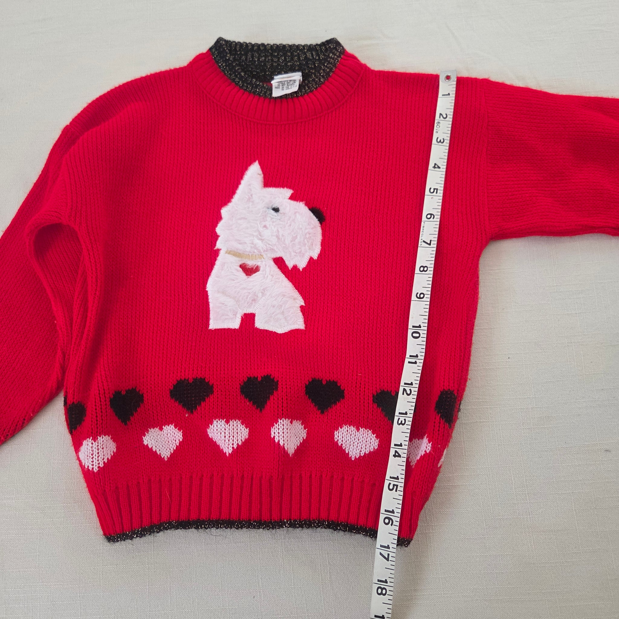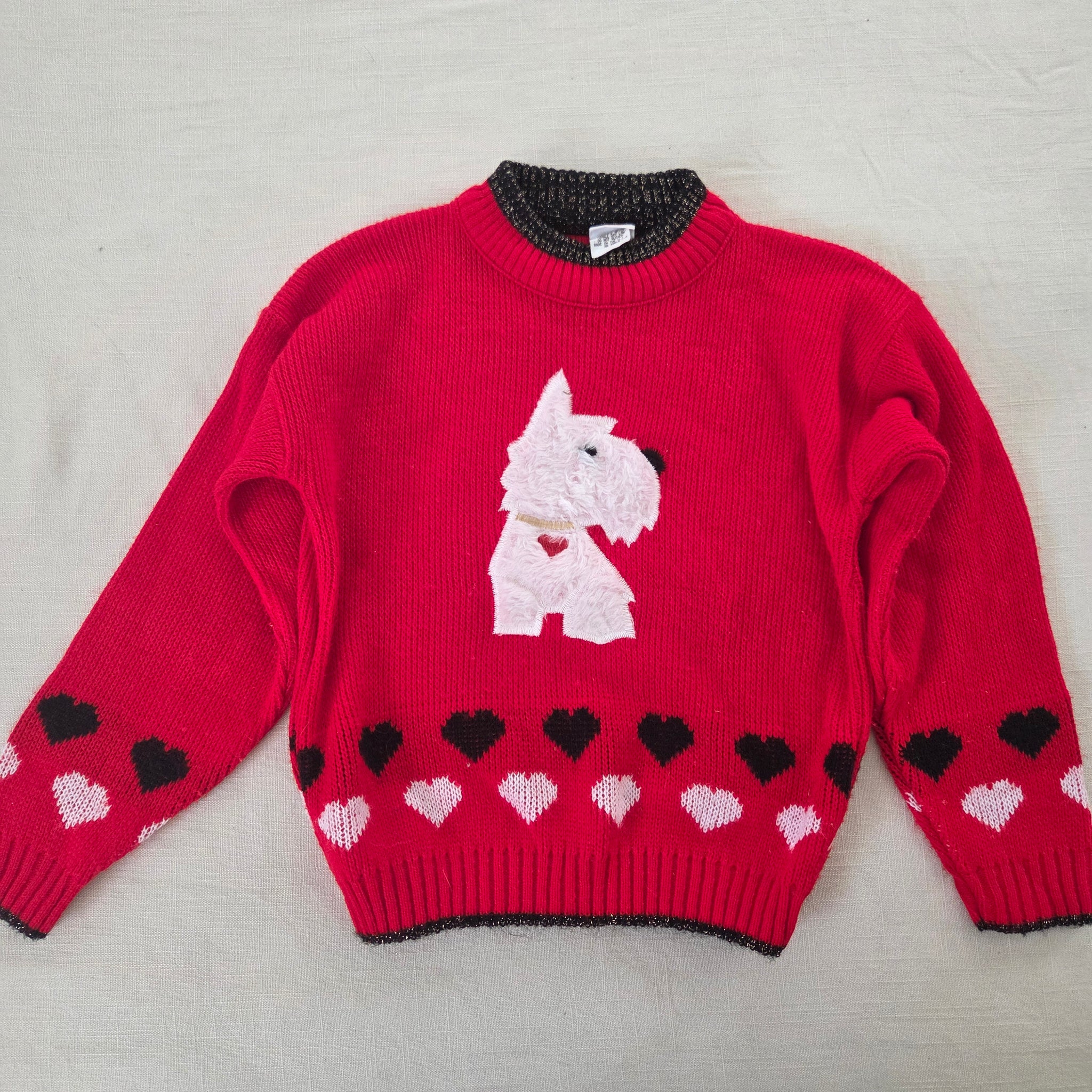 Vintage Brights Creek brand red knit sweater with Scottish terrier and heart details! Please see al photos for condition and measurements