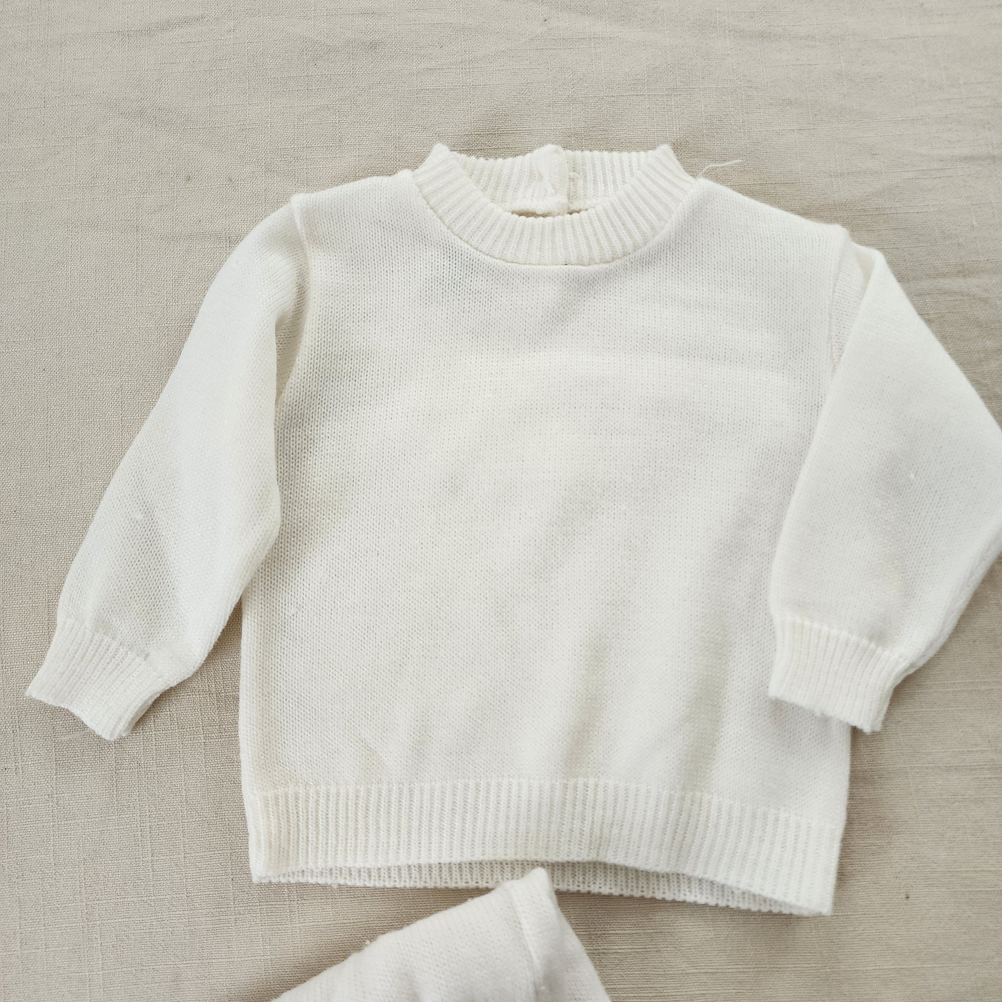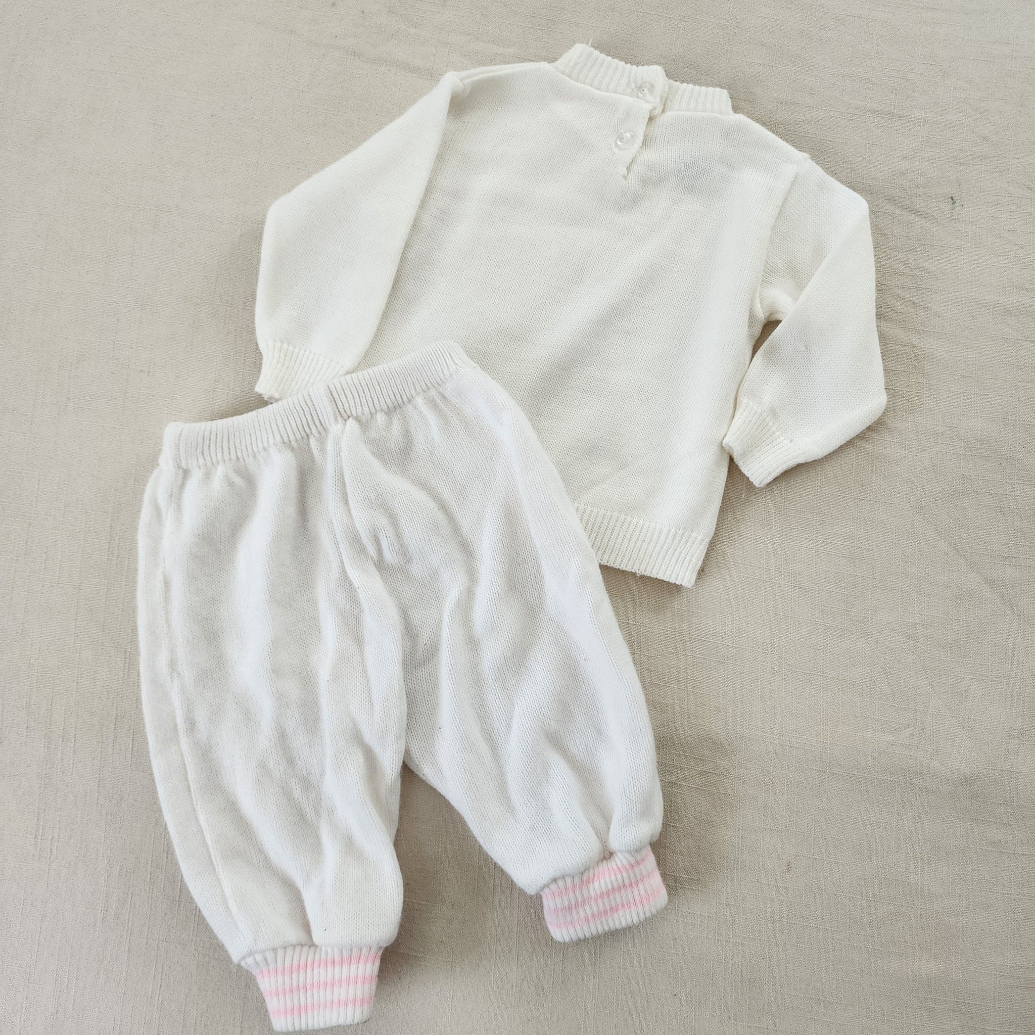 Vintage white and pink knit pants and sweater set! Please see all photos for condition and measurements